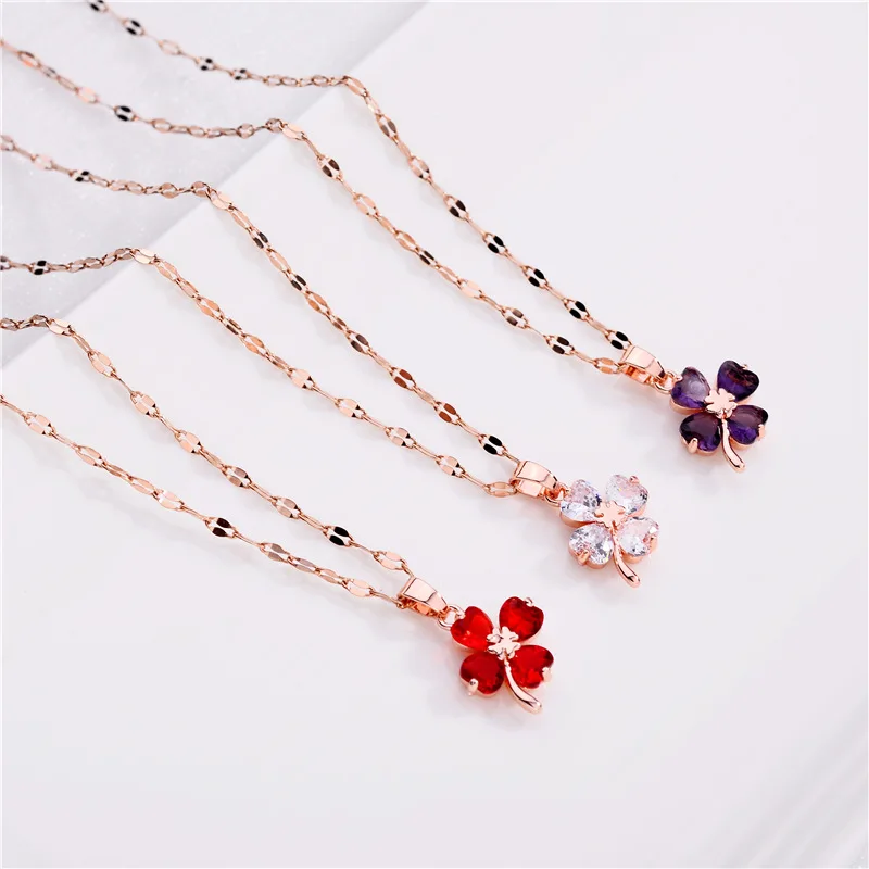 Ожерелье глянцевое из красной титановой стали, женское ожерелье с кулоном в виде четырехлистного клевера, женская модная Роскошная бижутерия, Подарочная цепочка до ключиц