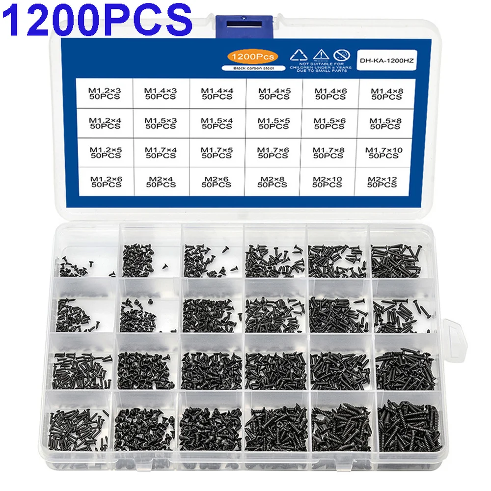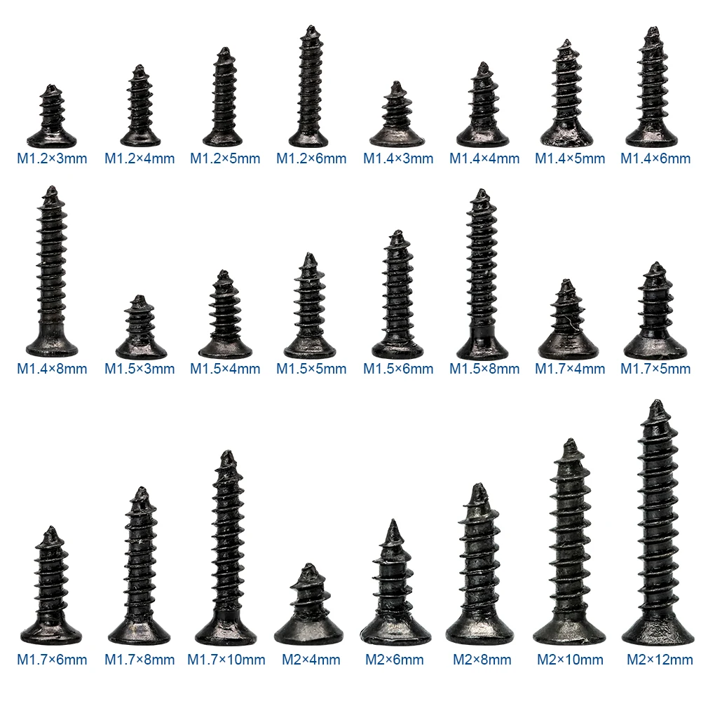 1200 шт.компл. черные потайные винты с плоской головкой с крестообразными встраиваемыми винтами M1.2 M1.4 M1.5 M1.7 M2 из углеродистой стали
