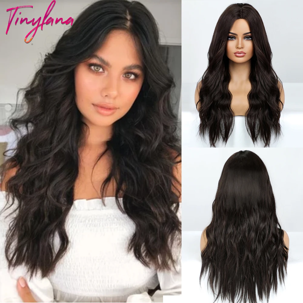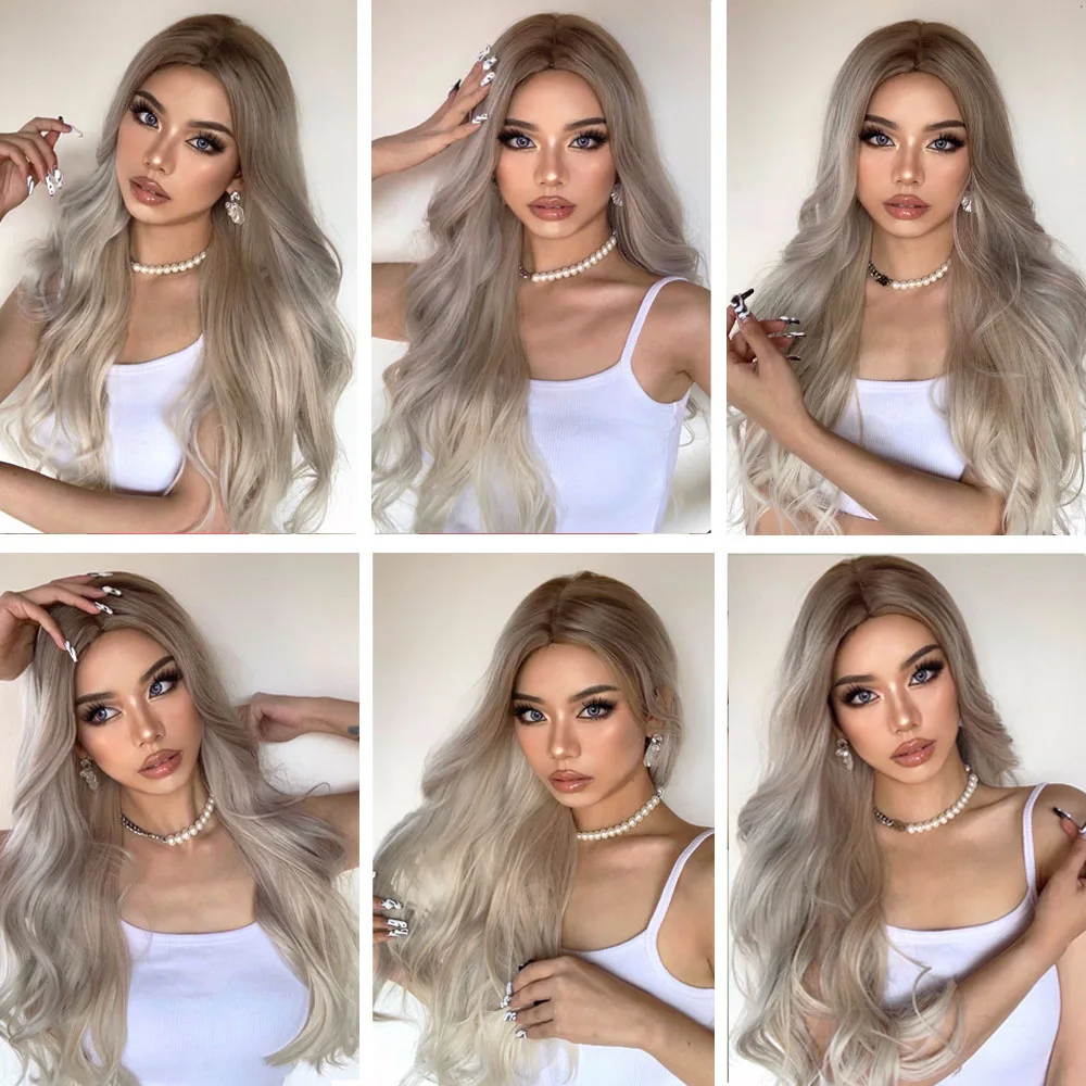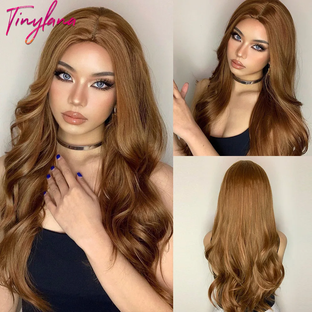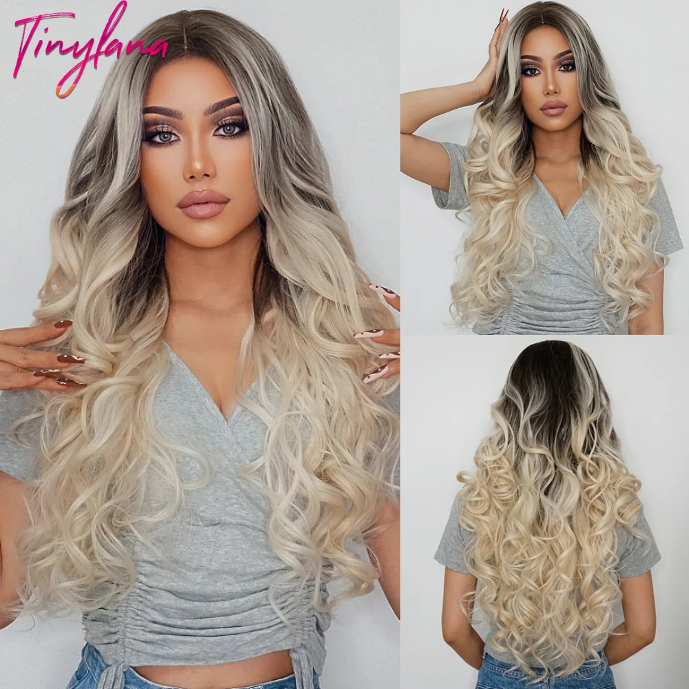 Крошечная Лана длинные Омбре коричневые фиолетовые серые волнистые парики средняя часть натуральные синтетические парики для женщин Косплей вечевечерние Термостойкое волокно