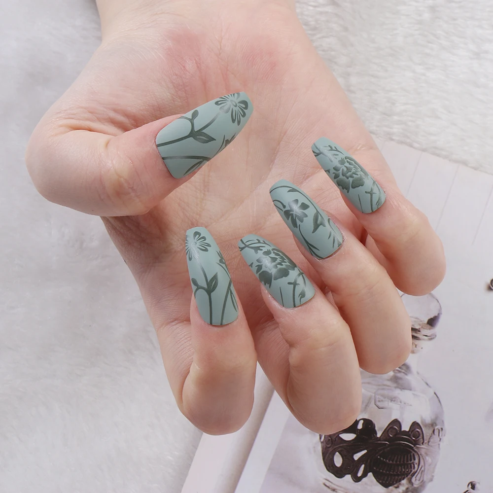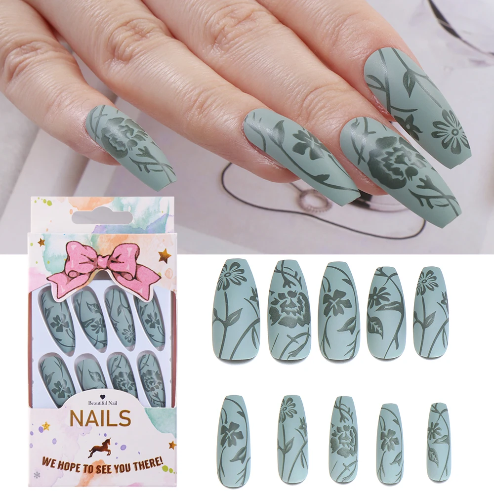 Набор съемных накладных ногтей, 24 шт., гроб, пресс для пламени на ...