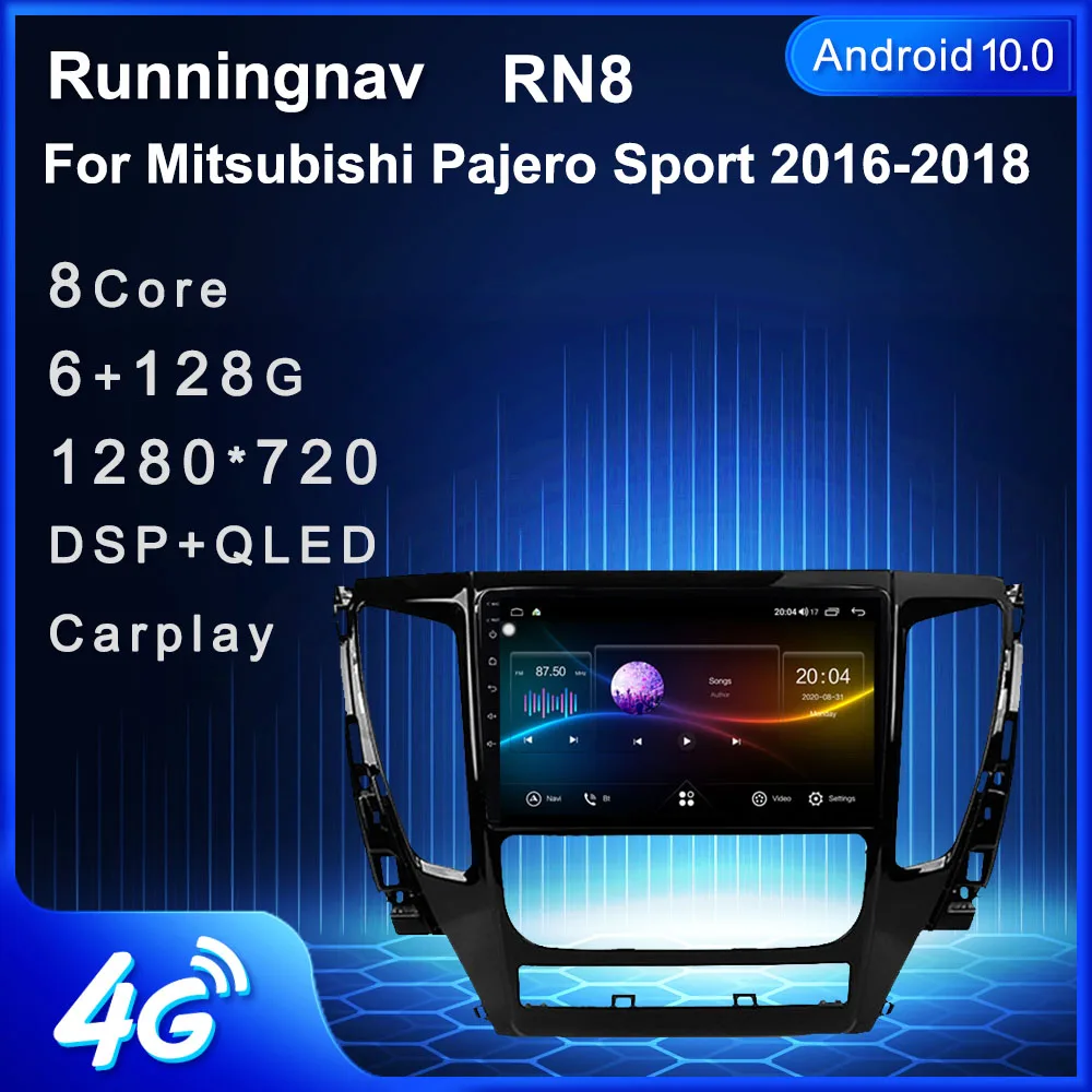 Автомагнитола на Android 10,0, мультимедийный видеоплеер для Mitsubishi Pajero Sport 2016 2017 2018 GPS Serero Carplay 6G 128G No 2 din 9"