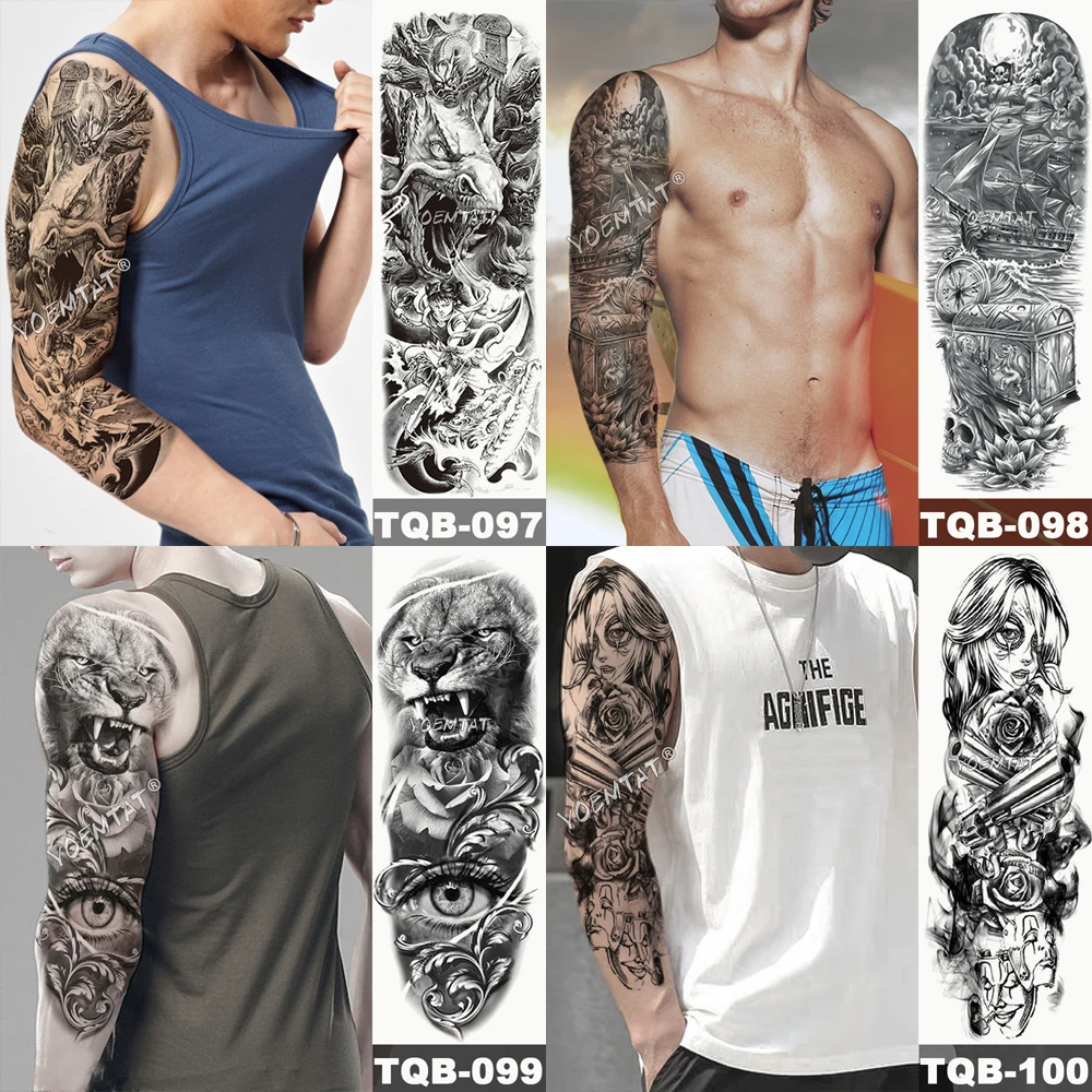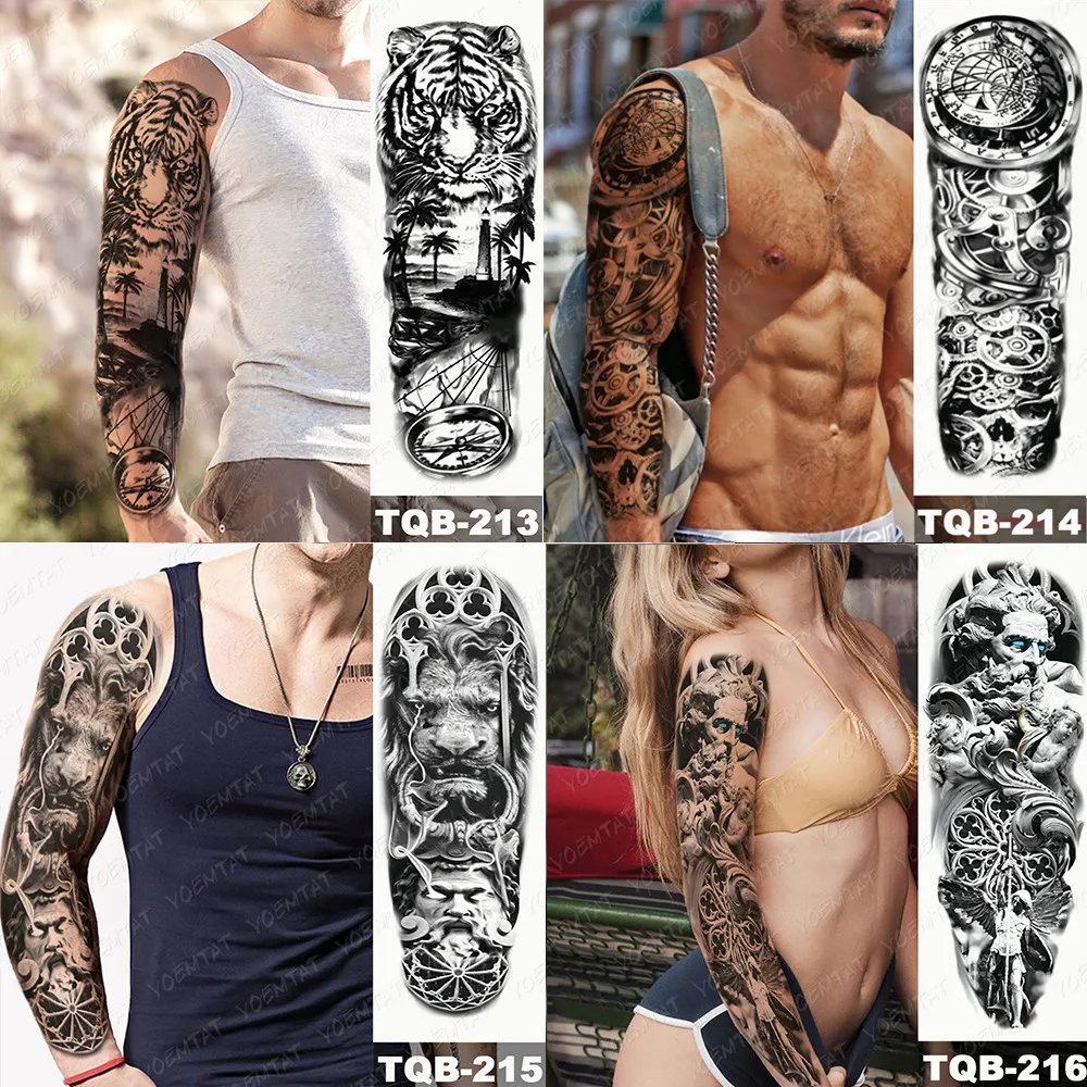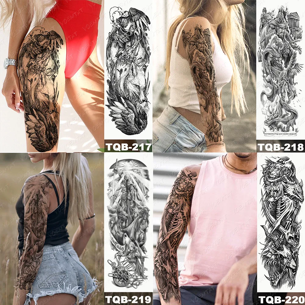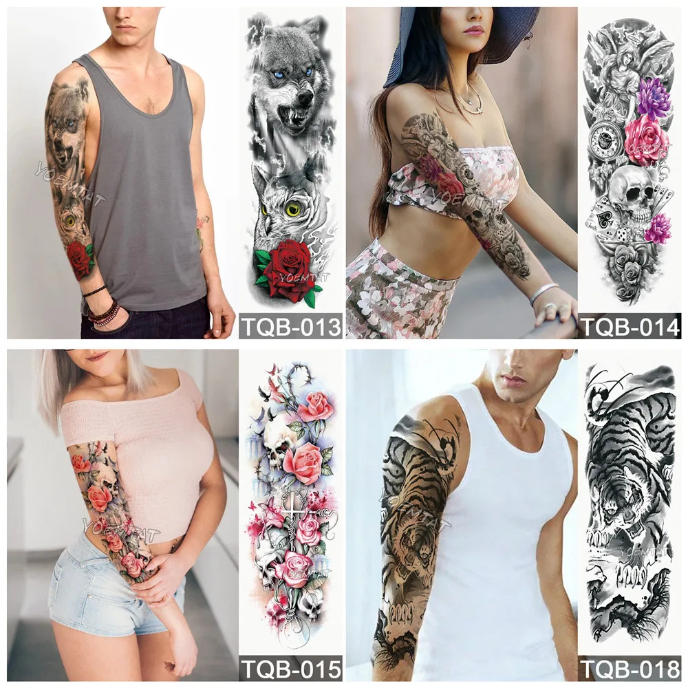 Большой татуировки рукава Книга с совой змея Водонепроницаемый временная татуировка стикер череп цветок для боди-арта на полную ногу с имитацией татуировки для мужчин и женщин