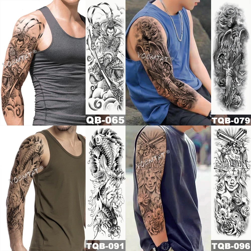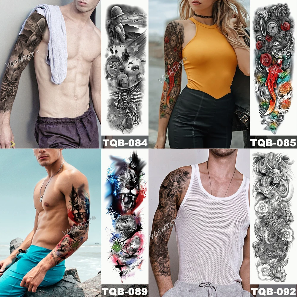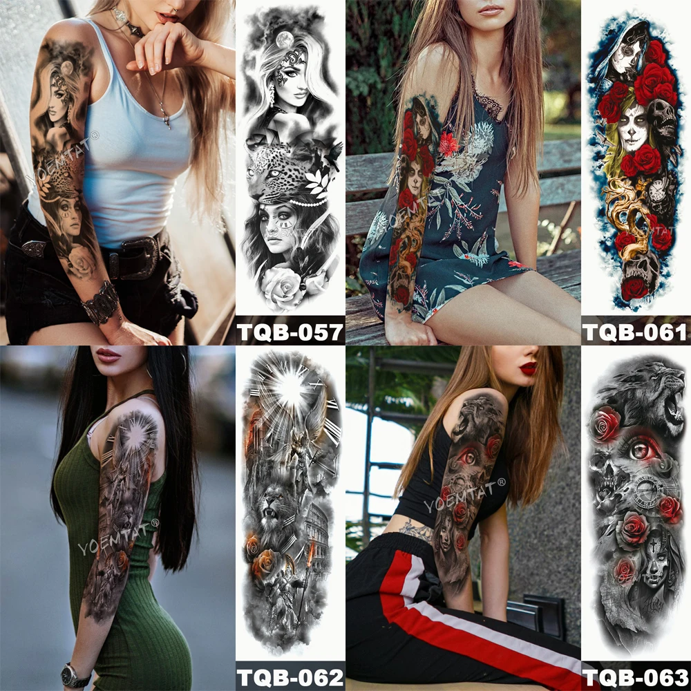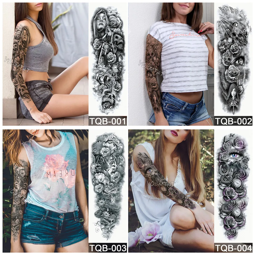 Большой татуировки рукава Книга с совой змея Водонепроницаемый временная татуировка стикер череп цветок для боди-арта на полную ногу с имитацией татуировки для мужчин и женщин