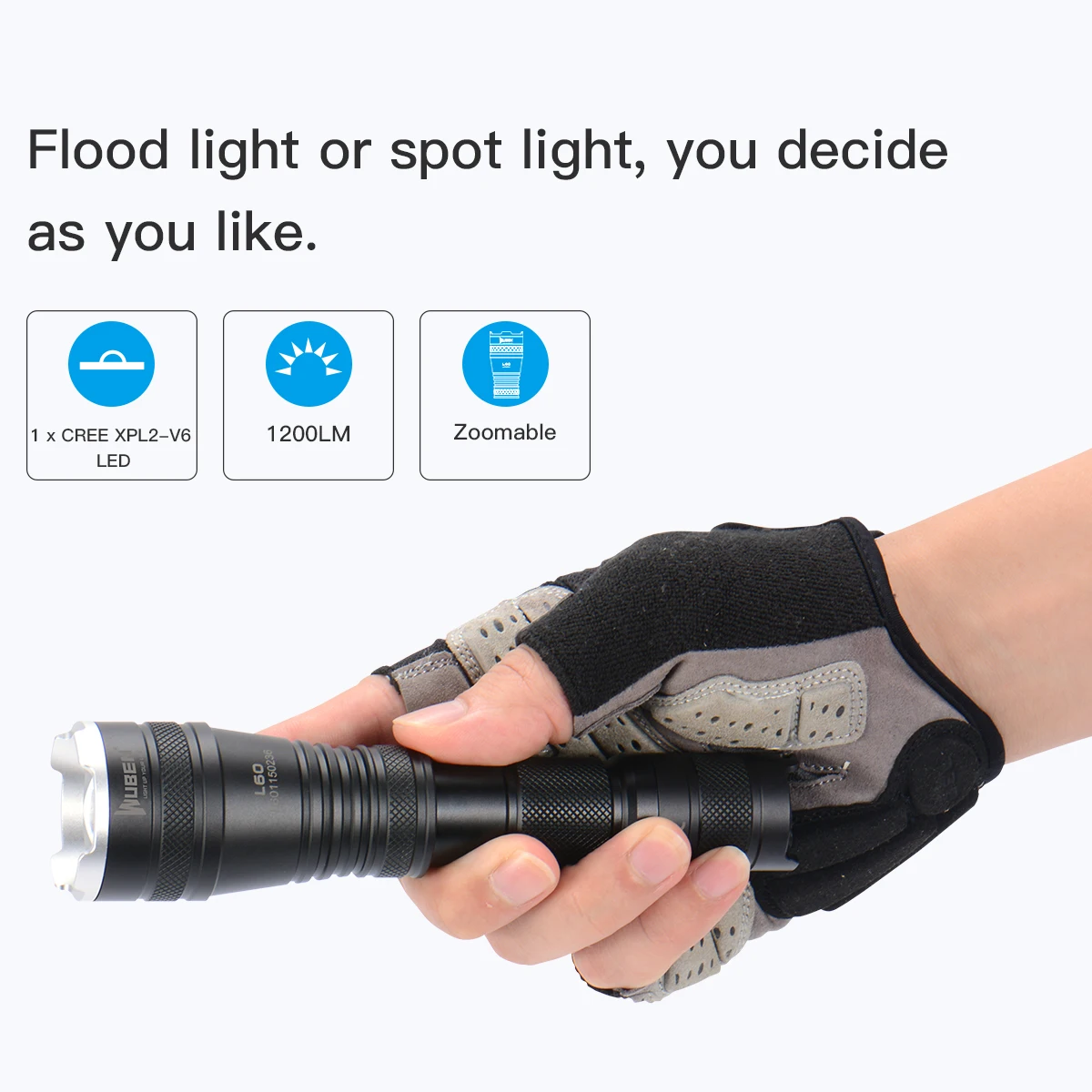 WUBEN L60 имеет 4 основных режима: High/1200LM, Mid/400LM, Low/75LM, Eco/5LM; И 1 режим для аварийной ситуации: SOS/200LM. Есть функция памяти mode для 4 основных режимов. Каждый раз, когда он будет включен режим, который он выключен в прошлый раз.