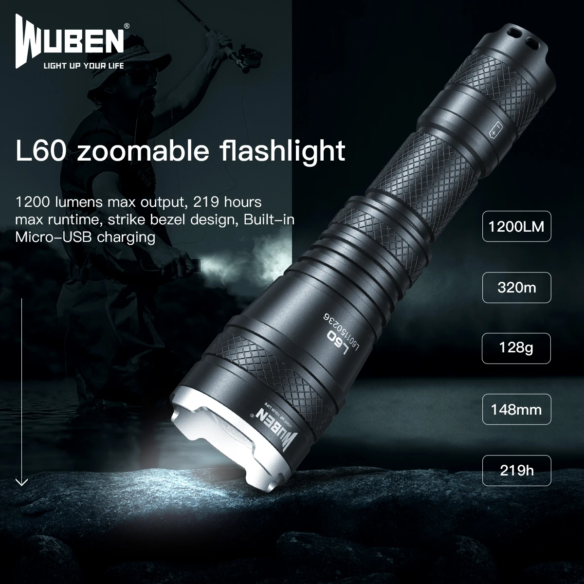 WUBEN L60-это фонарик EDC, который использует высокоэффективный светодиодный фонарь CREE XP-L2 V6, максимальный выход-до 1200 люмен, а максимальное расстояние луча-до 320 метров (1050 футов). Масштабируемая функция L60 широко используется в различных ситуациях.