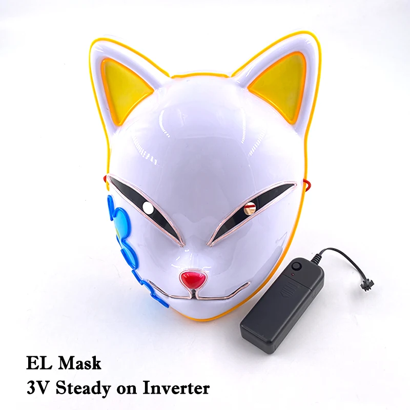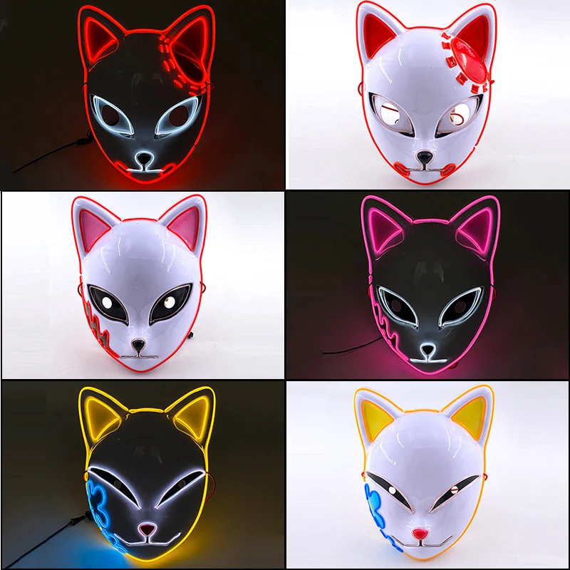 Светящаяся светодиодная аниме маска для косплея, маска убийцы демонов для вечеринки, светящаяся маска для косплея, костюм на Хэллоуин, вечеринку, светящаяся маска для вечеринки