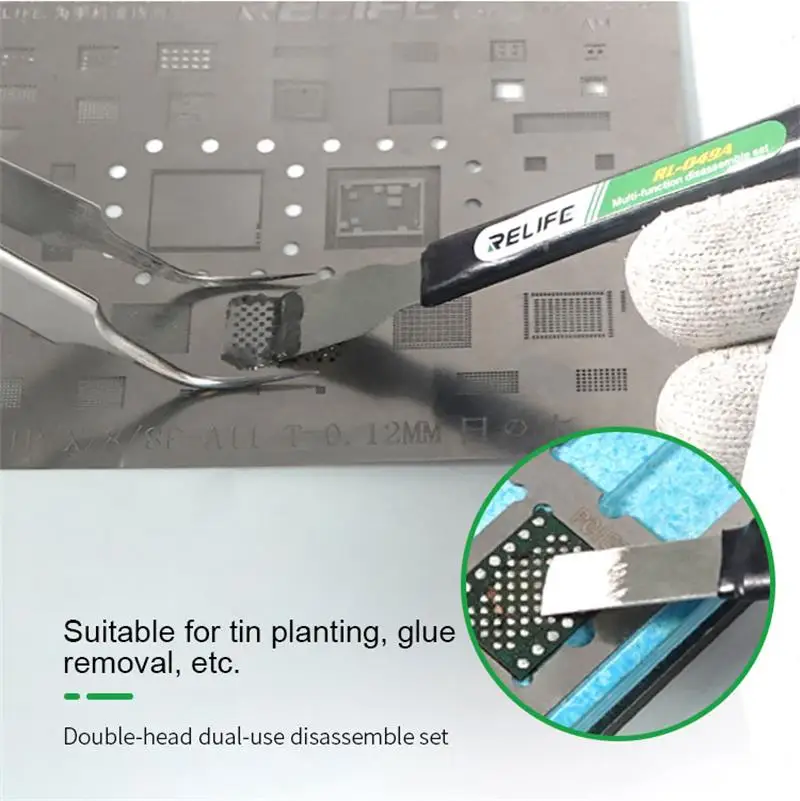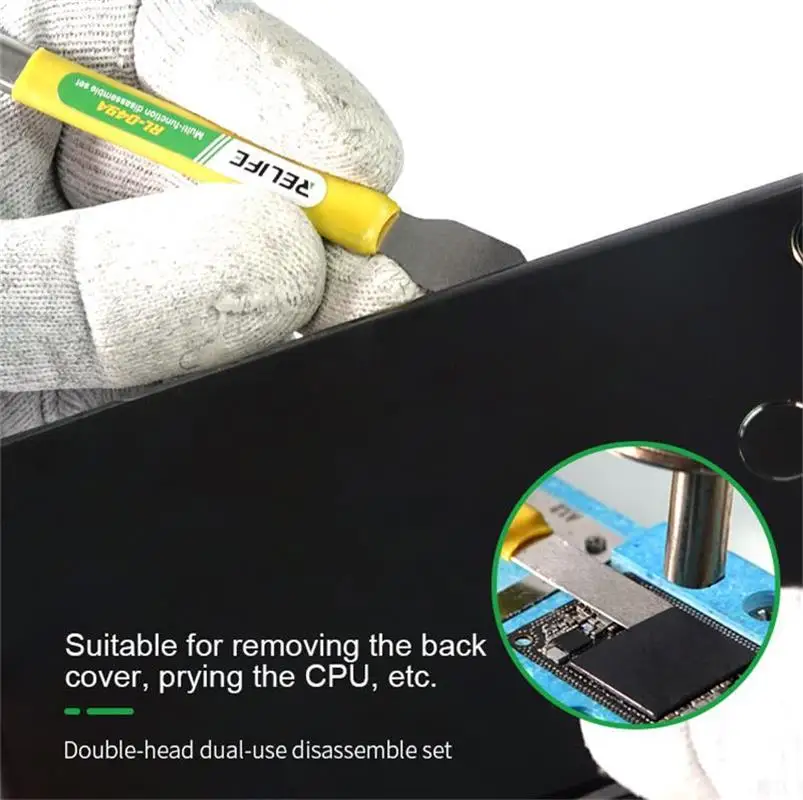 RELIFE RL-049A многофункциональный Зубная щетка с двумя головками и Применение разборки лом Android удалить стеклянная задняя крышка олова скребковый нож