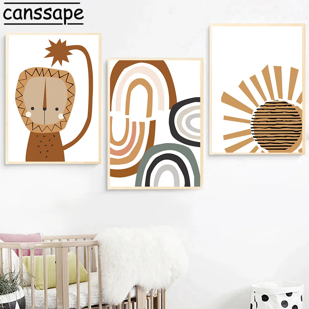 Детская Wall Art Холст Картины постеры "солнце" Радуга принтами картина со львом Животные плакат Boho фотографии детей Спальня украшения