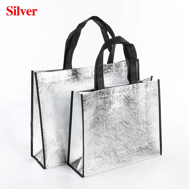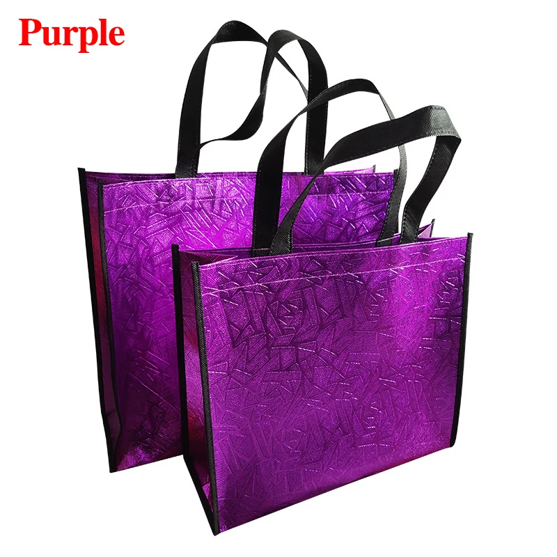 Название продукта: лазерная Нетканая сумка для покупок Категория продукта: сумка для покупок Цвет: красный, золотой, серебряный, фиолетовый Материал: нетканый Размер: S, высота 27x ширина 32x сторона 12 см L, Высота 32x ширина 40x сторона 12 см Упаковка: Opp мешок Контрольный список: Нетканая хозяйственная сумка x 1