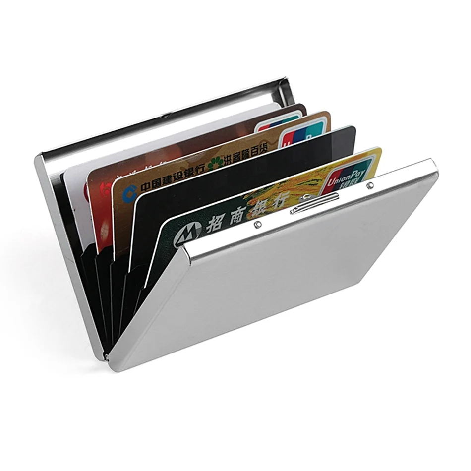 Модный алюминиевый антимагнитный держатель для карт для женщин и мужчин, металлический держатель для кредитных карт из воловьей кожи с технологией Rfid, держатели для визиток, органайзер, кошелек, кошелек