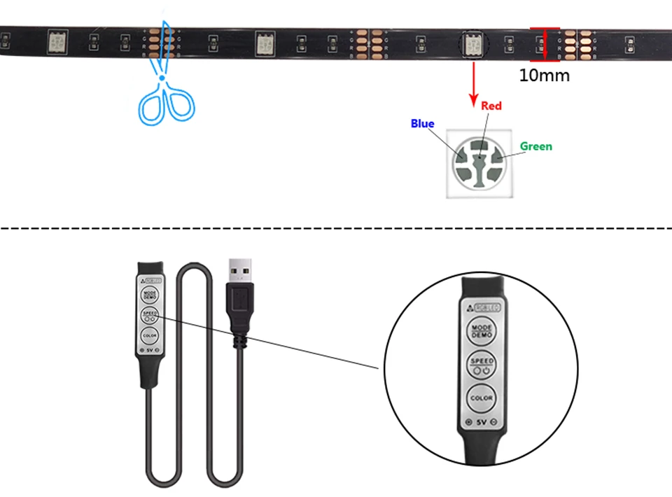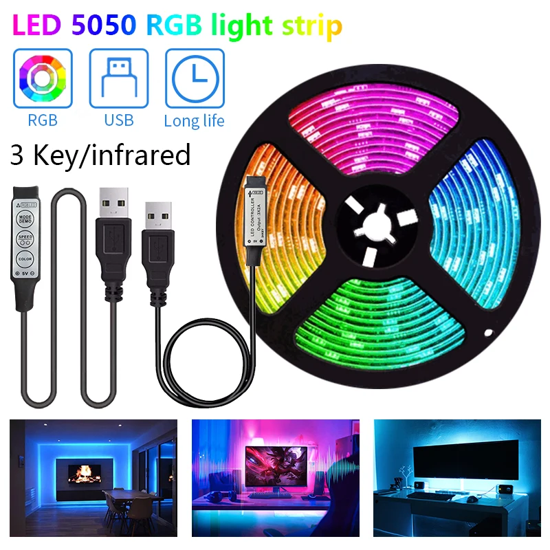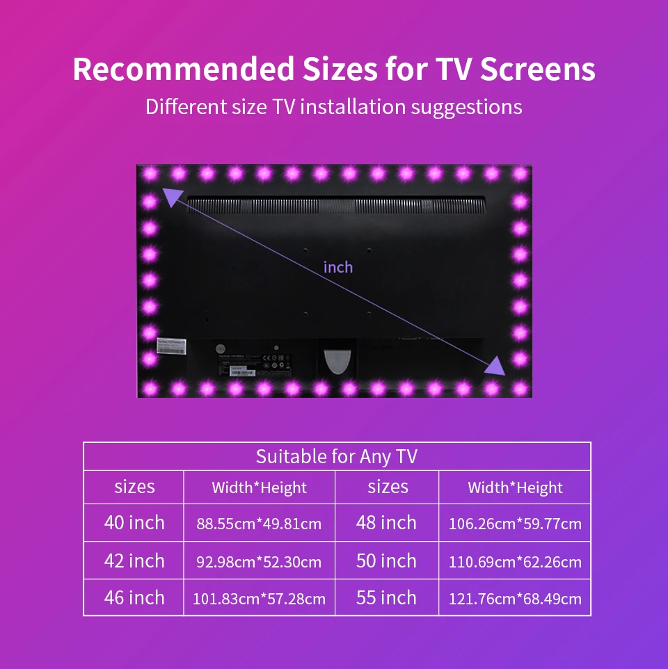 USB светодиодный лента Светодиодная гибкая для подсветки телевизора, 5 В
