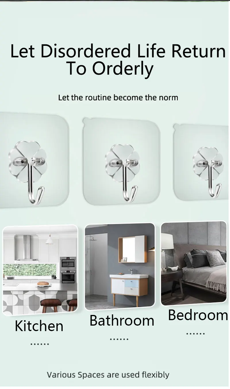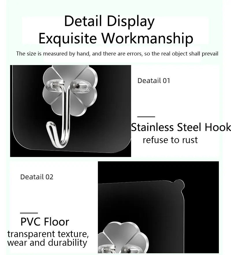 1. Нет повреждений стены, нет сверления: после отрыва, нет клеевых пятен на стене; Нет повреждений на крючке.2. Простой, но не простой, трехслойный склеивание Материал: один слой защиты, Двухслойное склеивание, сделать крюк более твердым. A. ABC новый материал безопасности и охраны окружающей среды; B. Сильный Бескаркасный клей: сильная вязкость, не легко упасть;C. Липкая защитная пленка, защита от пыли.3. Пусть распущенная жизнь вернется в порядок: пусть упорядоченная жизнь станет нормальной.4. Водонепроницаемый и устойчивый к падению, прочный и стабильный: легко наносится влажной среде, такой как кухня и ванная комната.5. Сильный Подшипник нагрузки, не бойтесь вызов: Легкий Подшипник нагрузки, не бойтесь веса.6. Практичный крючок, универсальная сцена: гибкое использование различных пространств, таких как кухня, ванная комната, спальня и т. д.