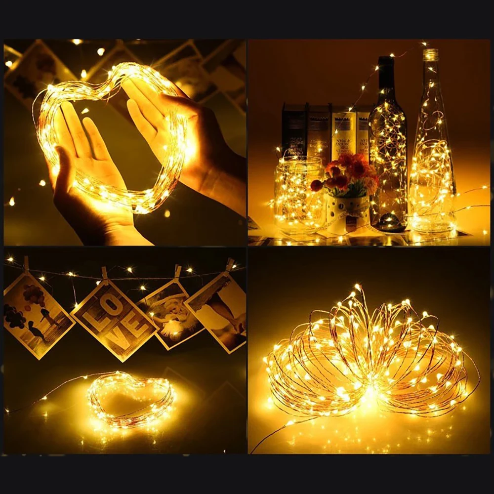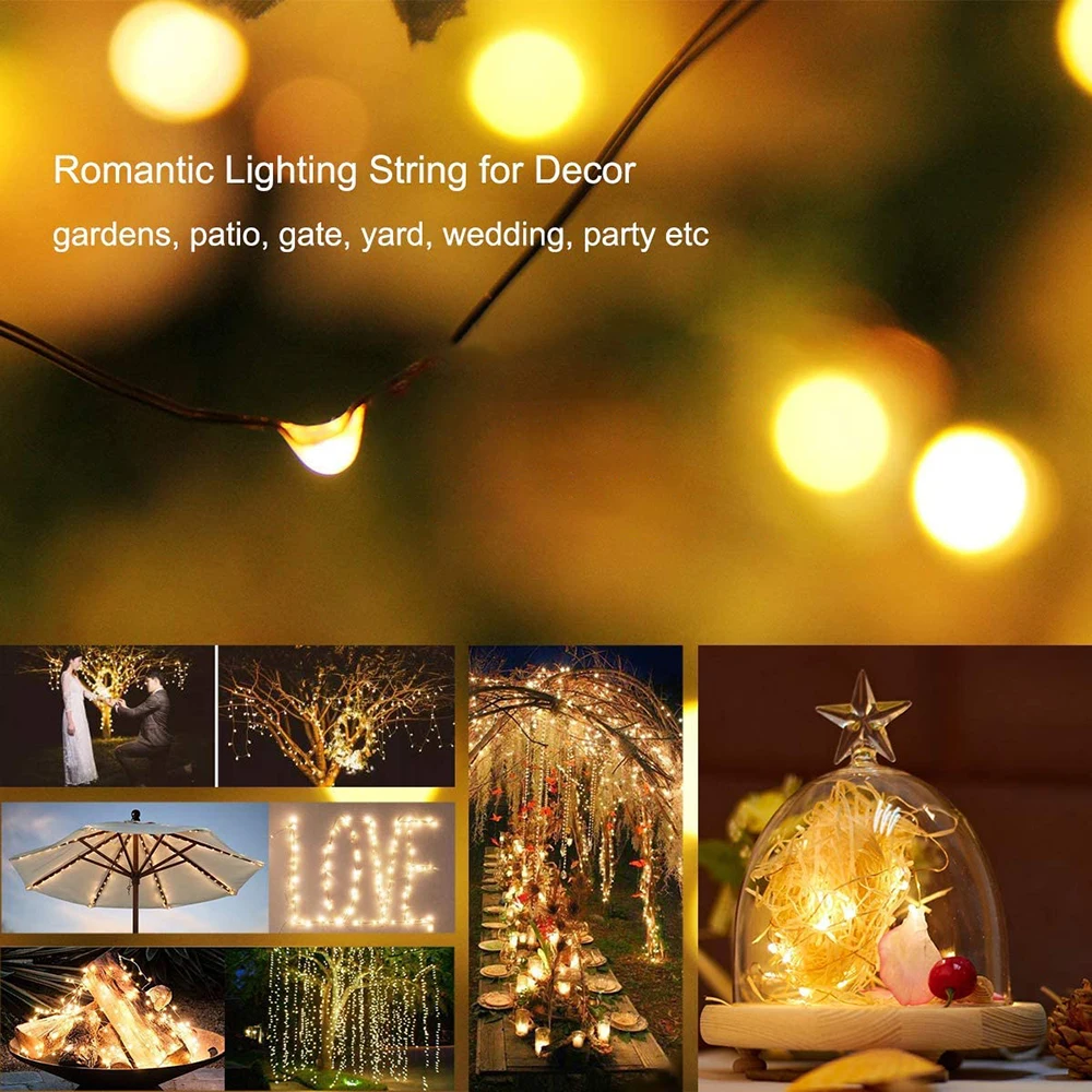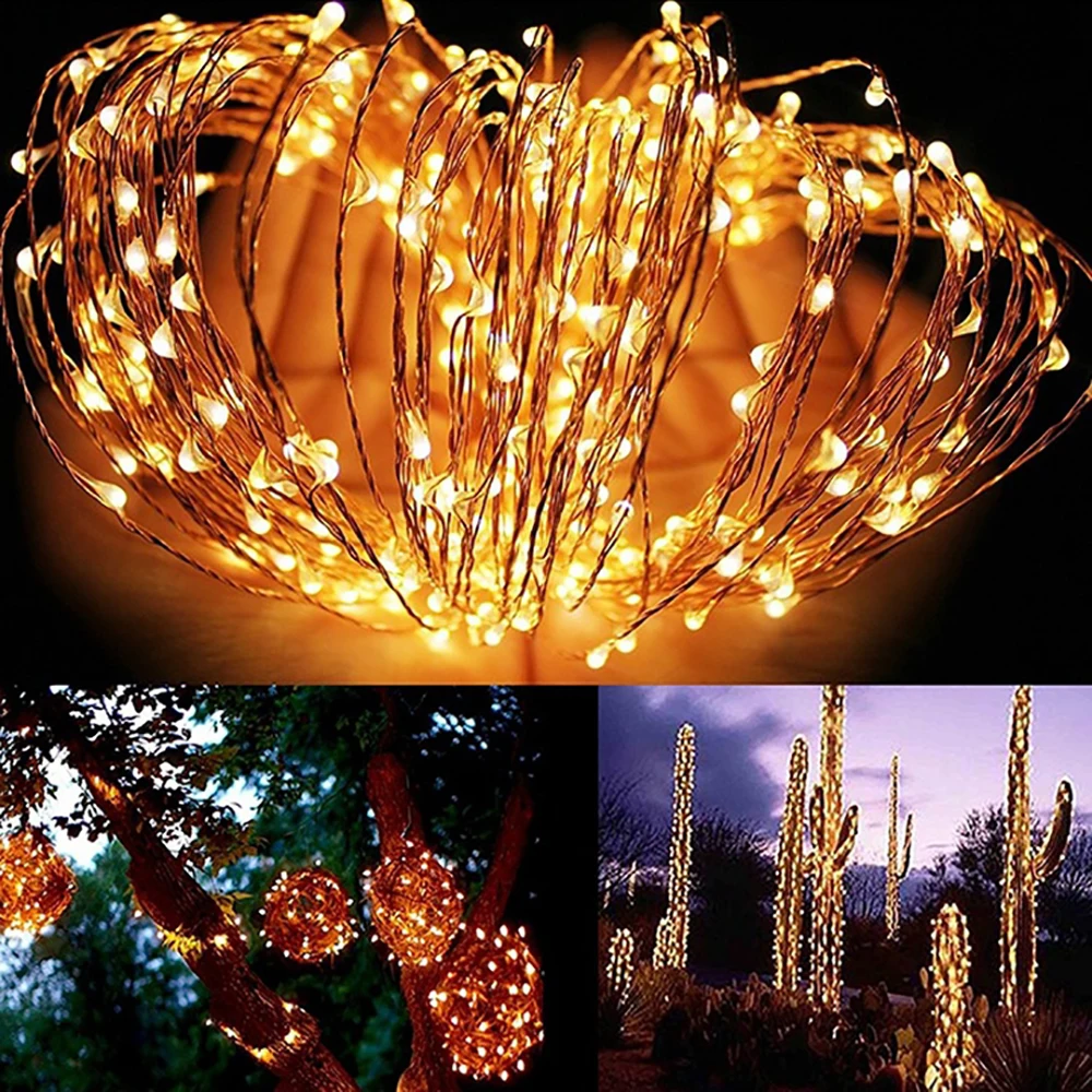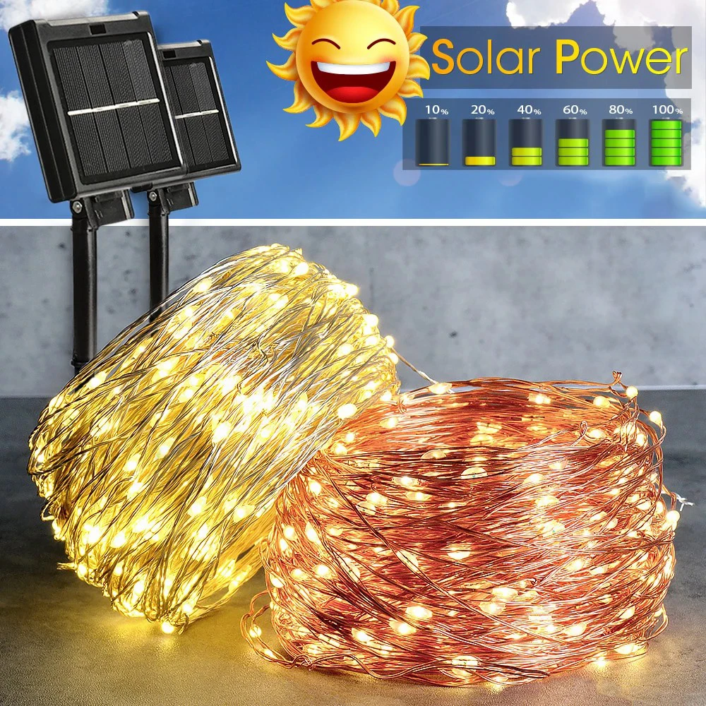 Гирлянда из медной проволоки на солнечной батарее, 100200 светодиодов