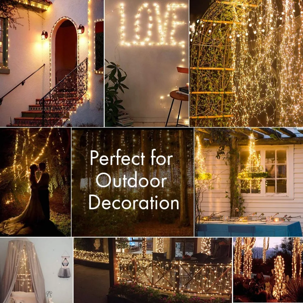 Гибкий и прочный: наши клиенты говорят, что они являются наиболее гибкими наружными солнечными гирляндами. Гибкая медь может легко построить нужные вам формы, вы можете согнуть медь в форме сердца или пентаграмму, и вы можете обернуть уличные деревья вокруг стволов деревьев или беседок. Солнечные струнные огни не перегреваются после многочасового использования, долговечны и безопасны в использовании.
