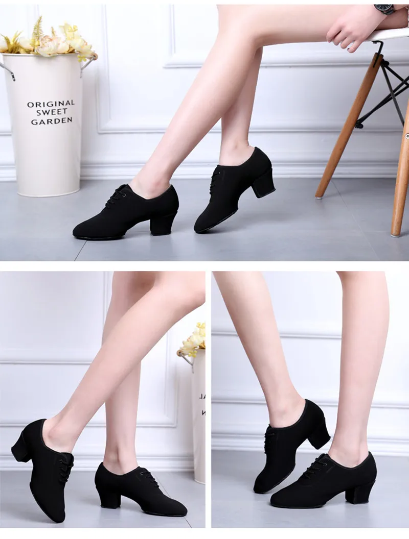 Латинская Сальса для танцев, для взрослых, с двумя точками подошвы, для учителя, мягкая ткань Оксфорд, для бальных танцев, 5 см, кубинские каблуки для женщин, танцевальная обувь для женщин