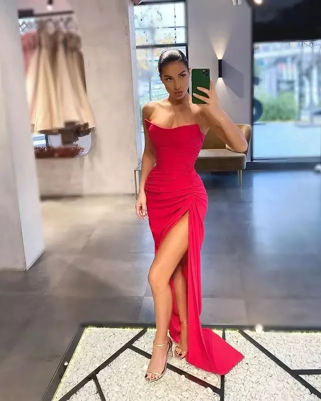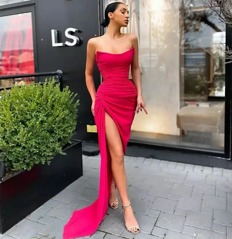Женское велюровое платье-русалка, Бордовое платье до пола из органз...
