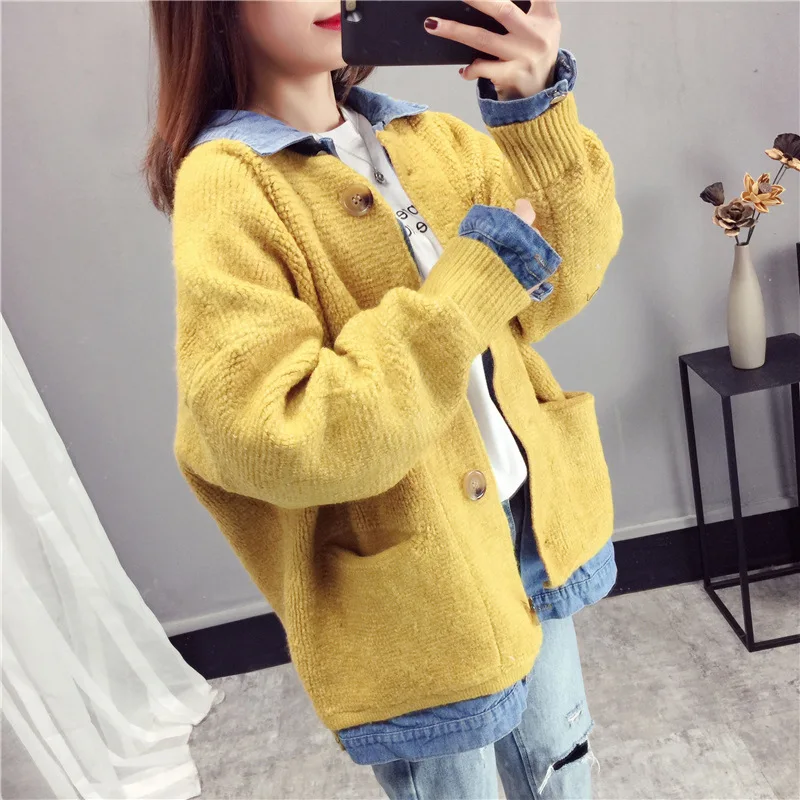 Кардиган женский, с карманами, свободный, с длинными рукавами, весна 2021