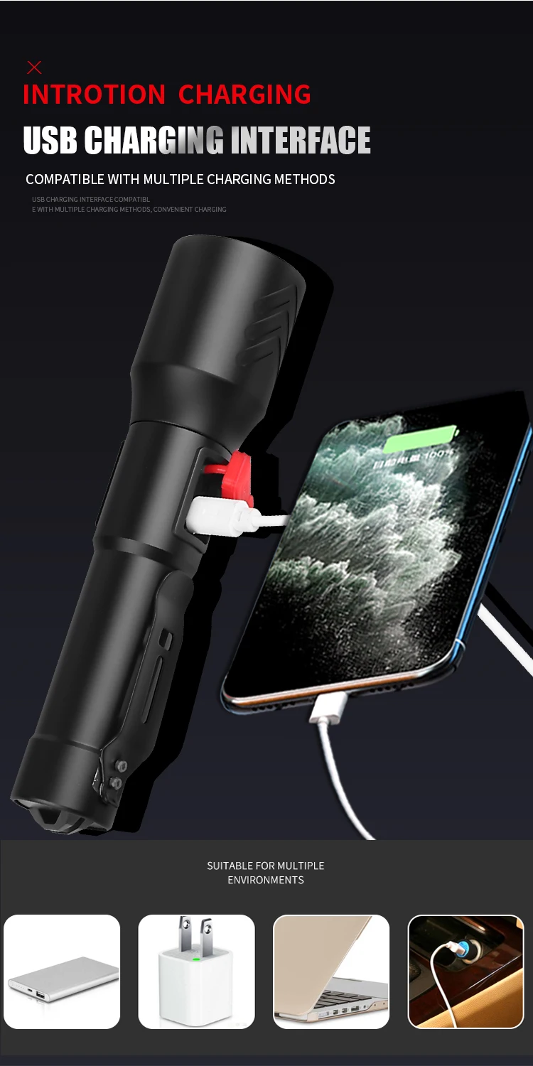 Суперъяркий фонарик XHP50, фонарик с фокусировкой, мощсветильник фонарь, уличный многофункциональный портативный фонарь с держателем для ручки