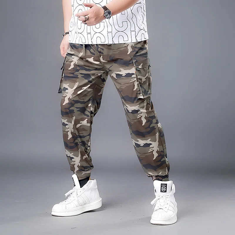 Мужские брюки-карандаш, камуфляжные свободные штаны в стиле милитар...