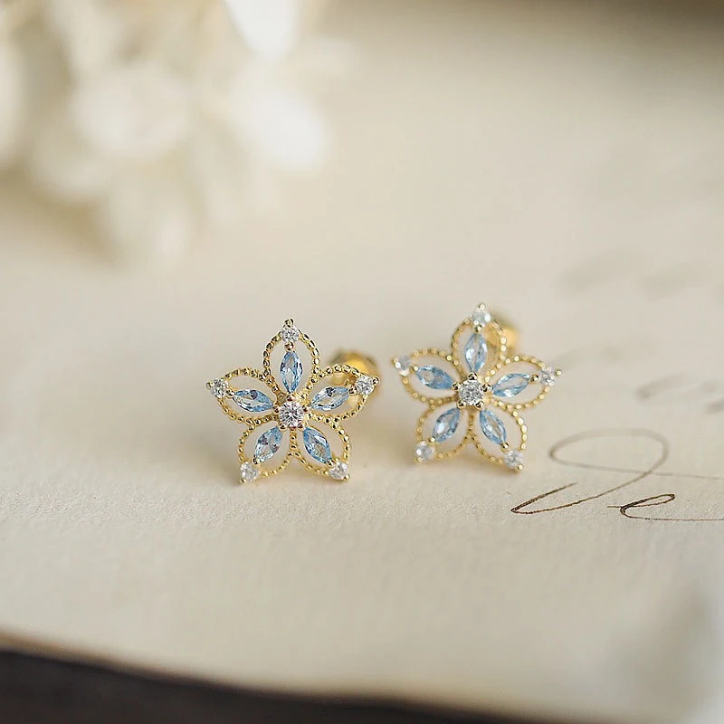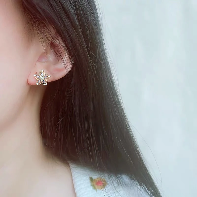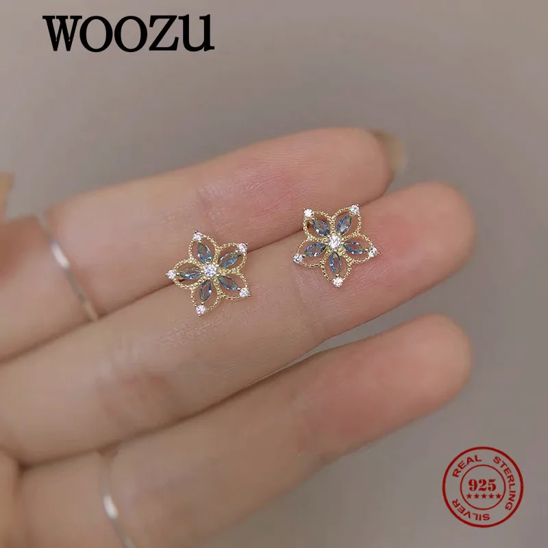 WOOZU реальные 925 стерлингового серебра с геометрическим узором, с узором из роз, циркон, серьги со шпилькой, для женщин, вечерние, 14k, покрыто золотом, романтичное милое, ювелирное изделие, подарок