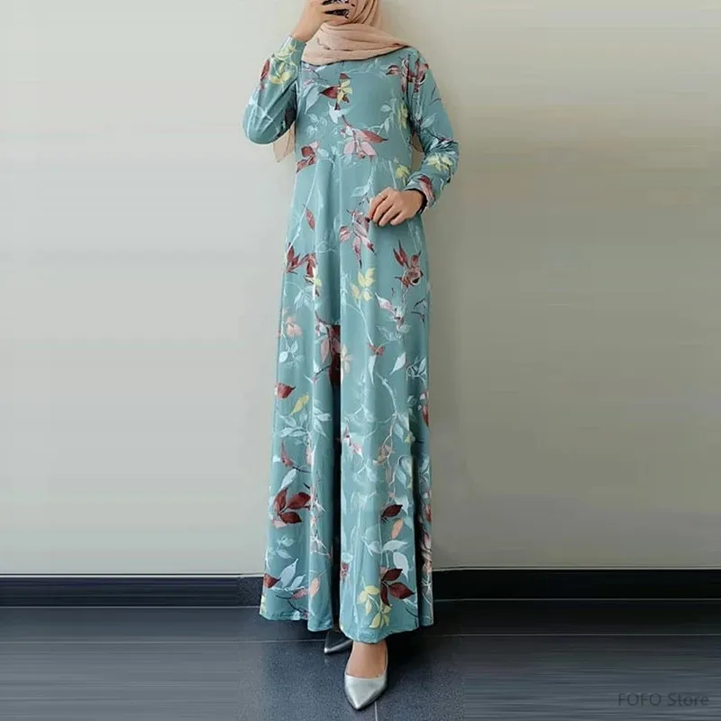 Женское платье с цветочным принтом, свободное платье в мусульманском стиле, S-5XL, размера плюс