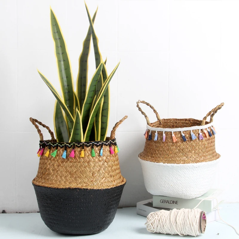 Новый макраме кисточки корзина для хранения растений плетеная декоративная садовый цветочный горшок ротанга морские водоросли домашняя плетеная Cestas Mimbre Органайзер