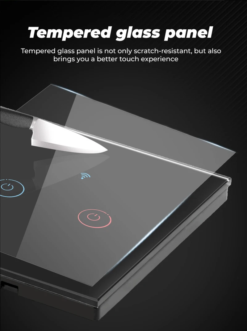 Стеклянный сенсорный экран этого Смарт-переключателя чувствителен к прикосновениям