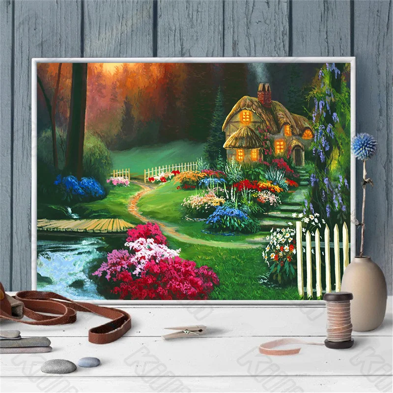 Красивый дом, алмазная роспись, круговое сверло, квадратные алмазны...