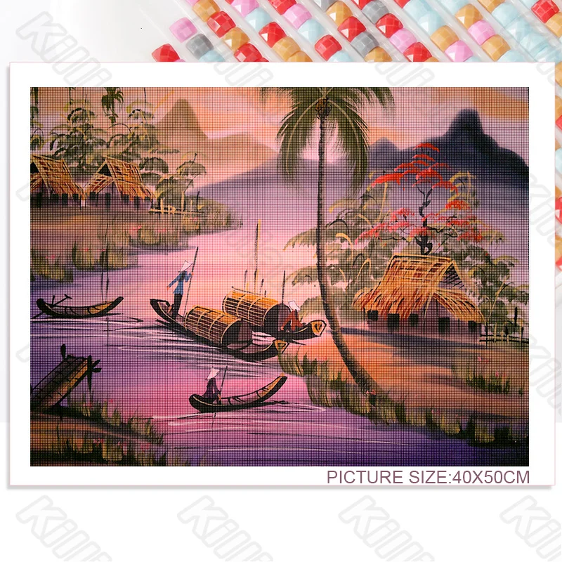 Diy алмазная живопись красивый природный пейзаж ночной берег реки ц...