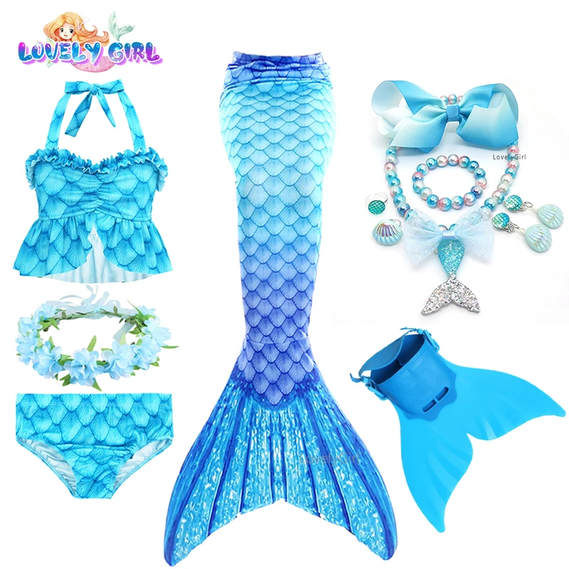 4 шт.: 1 юбка с хвостом русалки + 1 бюстгальтер + 1 шорты + 1 венок 5 шт.: 1 юбка с хвостом русалки + 1 бюстгальтер + 1 шорты + 1 венок + 1 монофин 12 шт.: 1 * юбка с хвостом русалки + 1 * бюстгальтер + 1 * шорты + 1 * венок + 1 * монофин + 1 * ожерелье + 1 * браслет + 2 * кольцо + 1 пара зажимов для ушей + 1 * зажим для волос