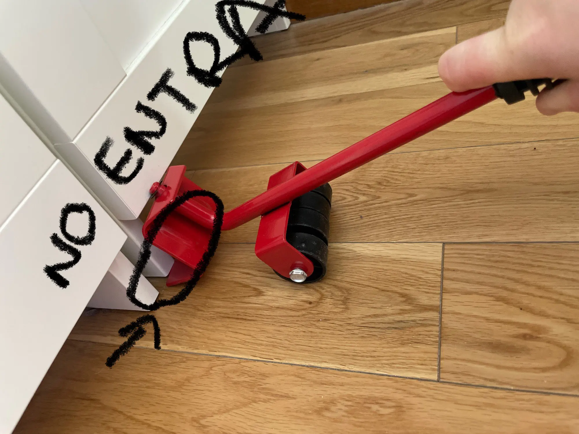 Рычаг соскальзывает с мебели, поэтому мебель опускается.
