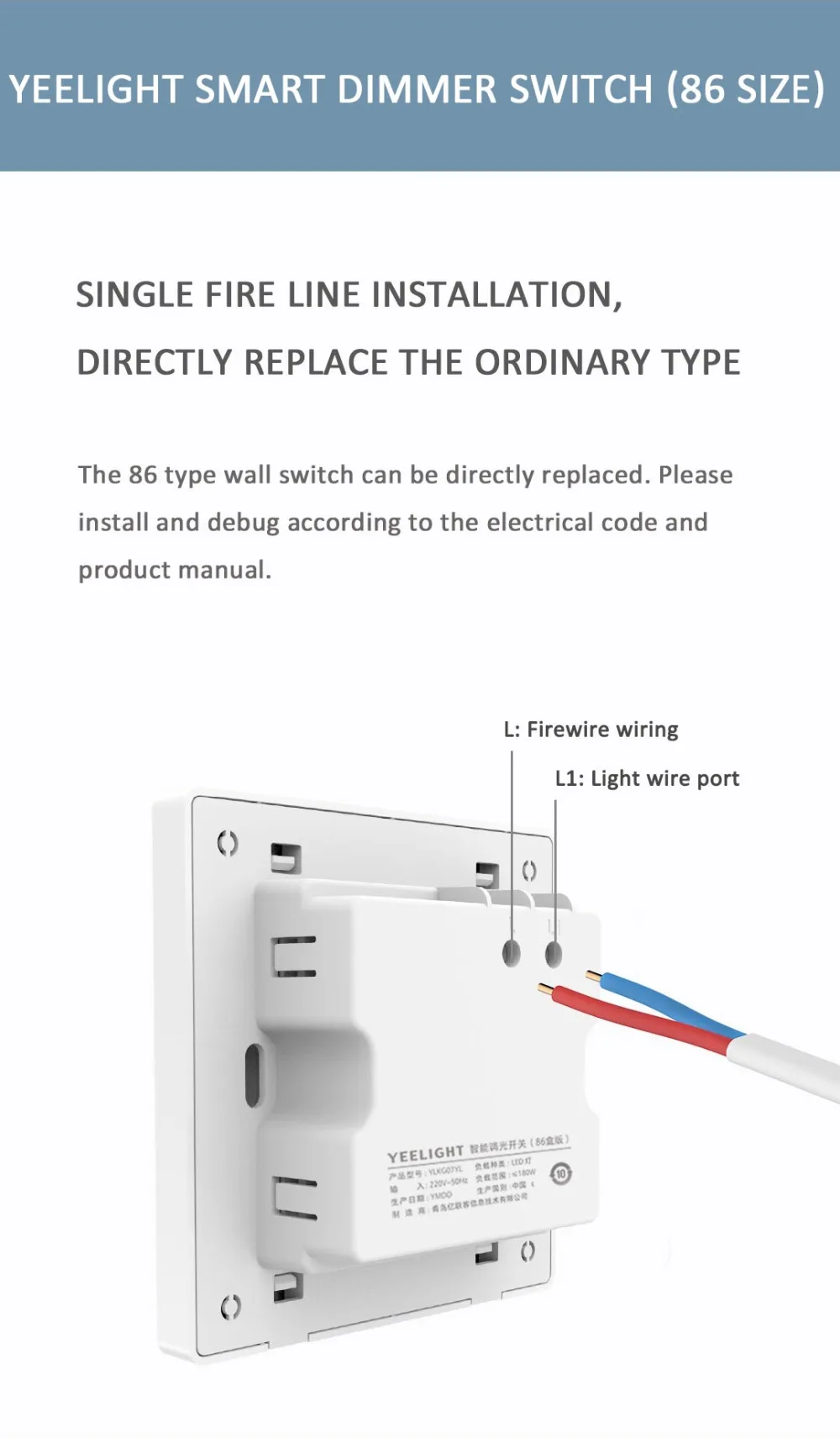 Умный диммер yeelight решает проблему, связанную с тем, что настенный выключатель не может быть интеллектуально контролирован после выключения питания.
