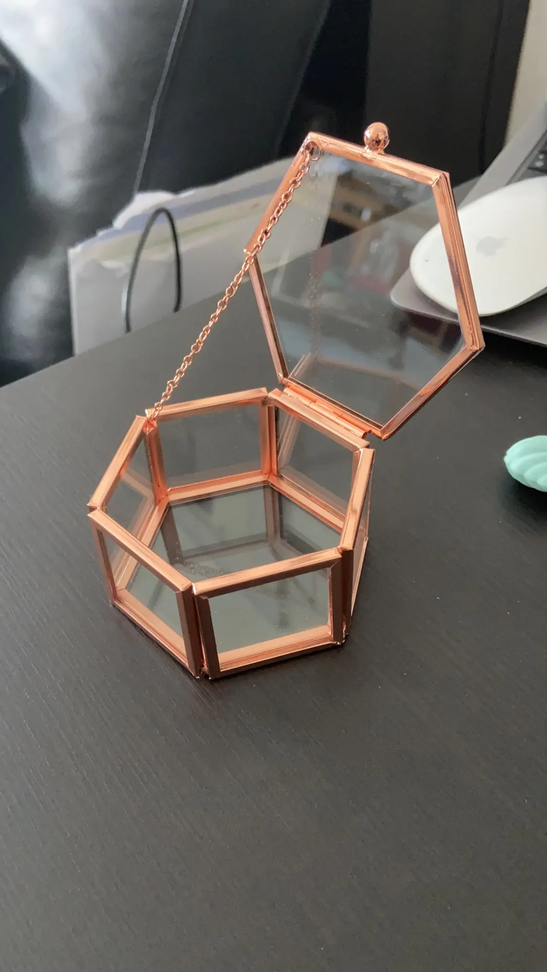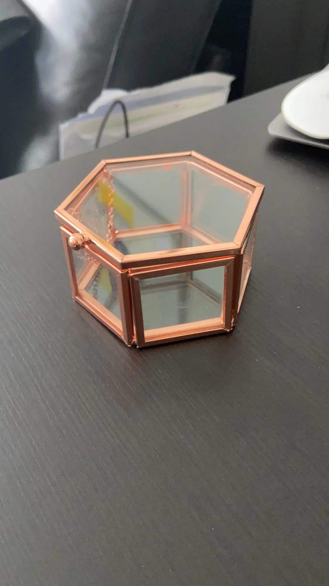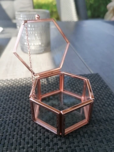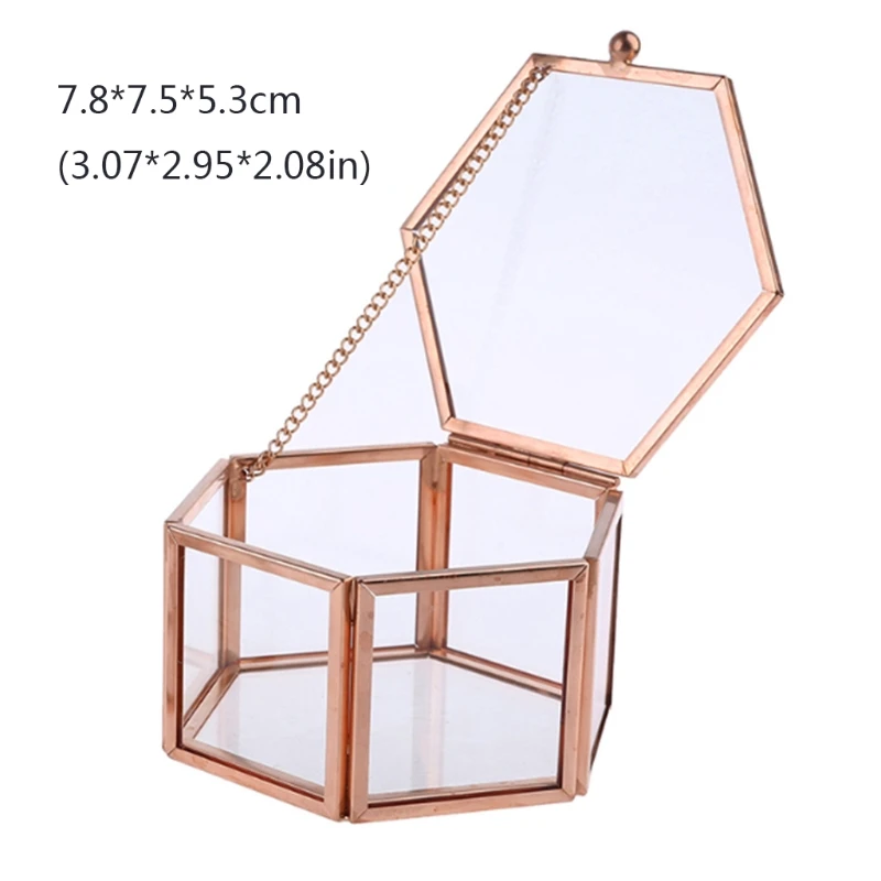 Шкатулка для колец Прозрачная с шестиугольным, из розового золота, с прозрачным геометрическим узором, органайзер, настольный держатель для ювелирных изделий