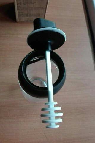 Товар получен из категории "Почти даром" за 74 копейки. Приятно, но за полную стоимость никогда бы не купила. Предполагается для жидкого мёда, но это бывает так редко... крышечка с ложечкой для мёда просто вставляется и держится слегка.