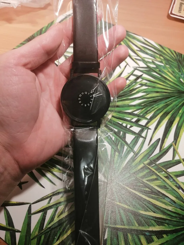 Товар приехал быстро. Качество часов хорошее. Ремешок из экокожи жёсткий.