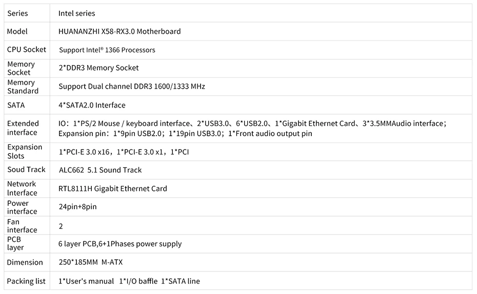 Материнская плата HUANANZHI X58 RX3.0 для LGA 1366, поддержка RECC NON-ECC DDR3 и процессора xeon, USB3.0, AMD RX серии X5670, X5575, X5650