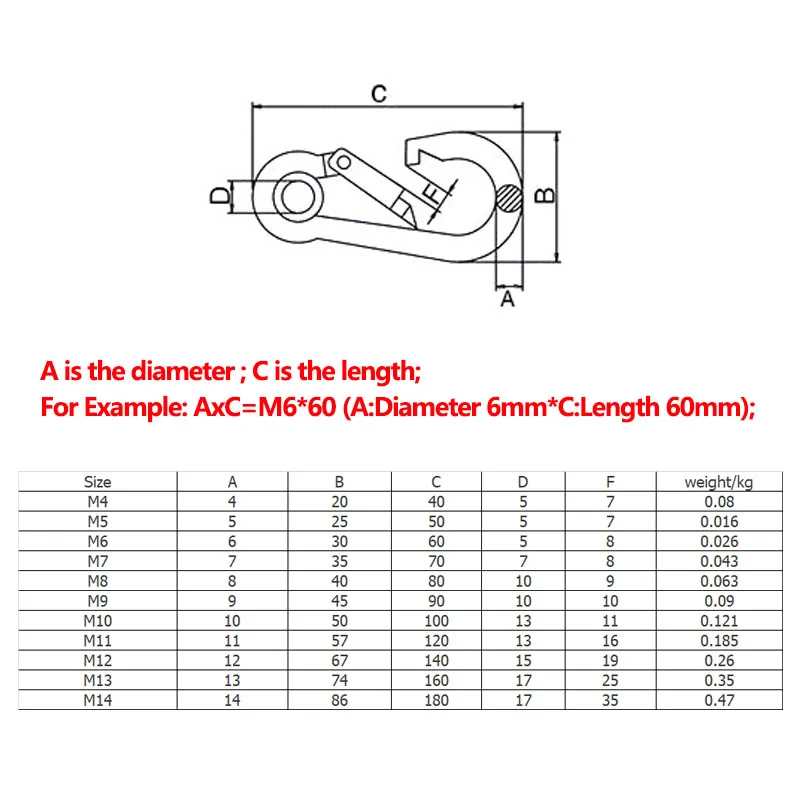 Форма размера:AxC = M6 * 60 (A: диаметр 6 мм * C: Длина 60 мм);