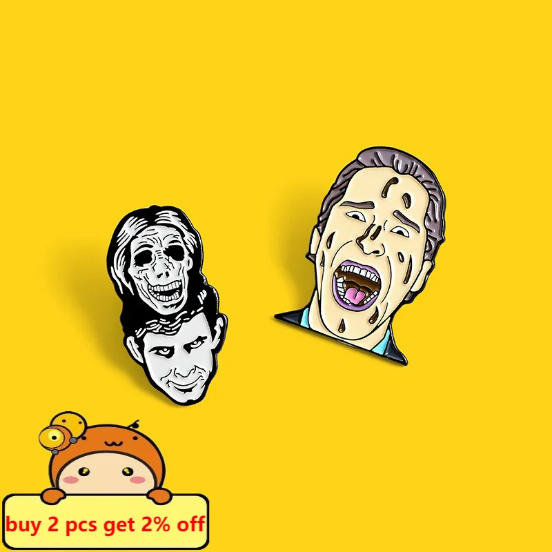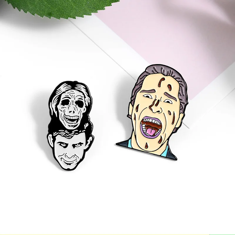 Значок психоделический эмалевый, двойная индивидуальная брошь в виде Нормана, убийцы, из фильма ужасов, на лацкан, ювелирное изделие для друзей, подарки для любителей фильмов