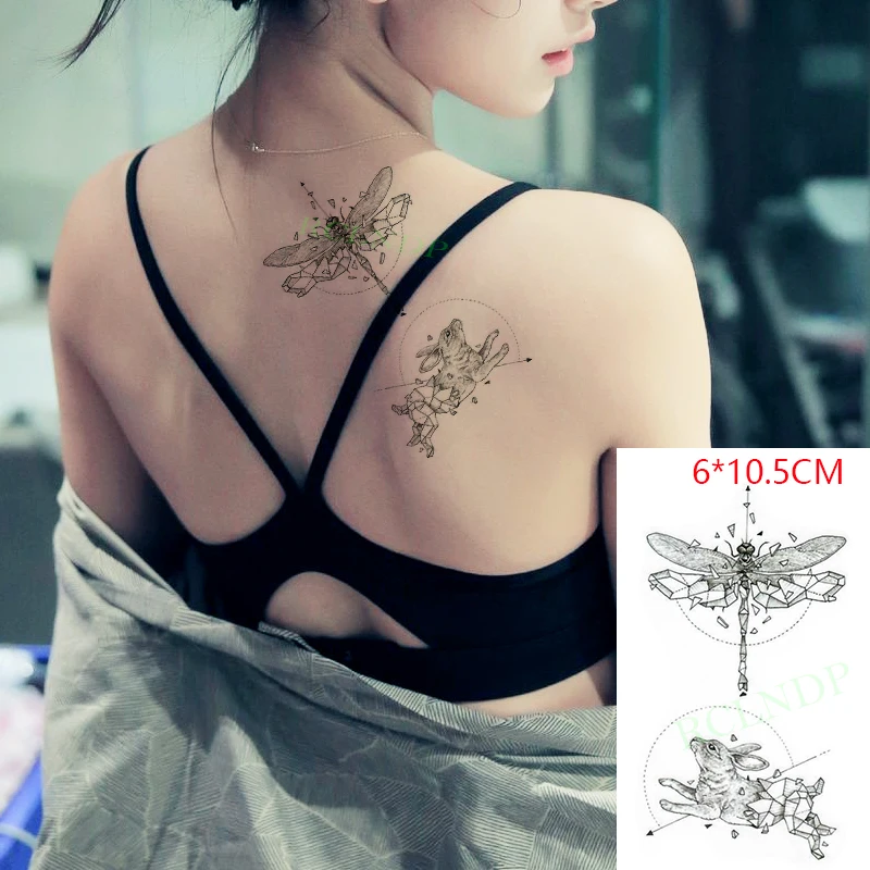 Водостойкая Временная тату-наклейка, кролик, стрекоза, стрела, боди-арт, флэш-тату, искусственная татуировка для женщин и мужчин