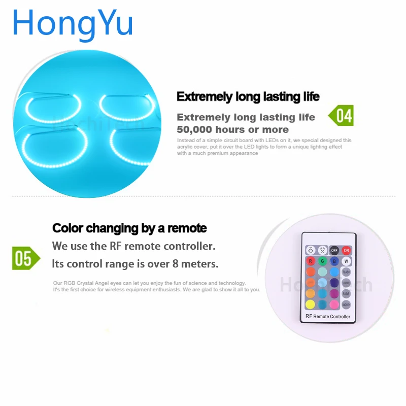 Почему вам нужно выбрать Hochitech angl eyes?Потому что наше качество лучше, чем у других.1.HochiTech: сопротивление, размещенное на поверхности. Он может рассеивать больше тепла. Он может продлить срок службы лампы.Другое: резистор расположен на задней части.Он не может рассеивать больше тепла. Лампа легко горит.