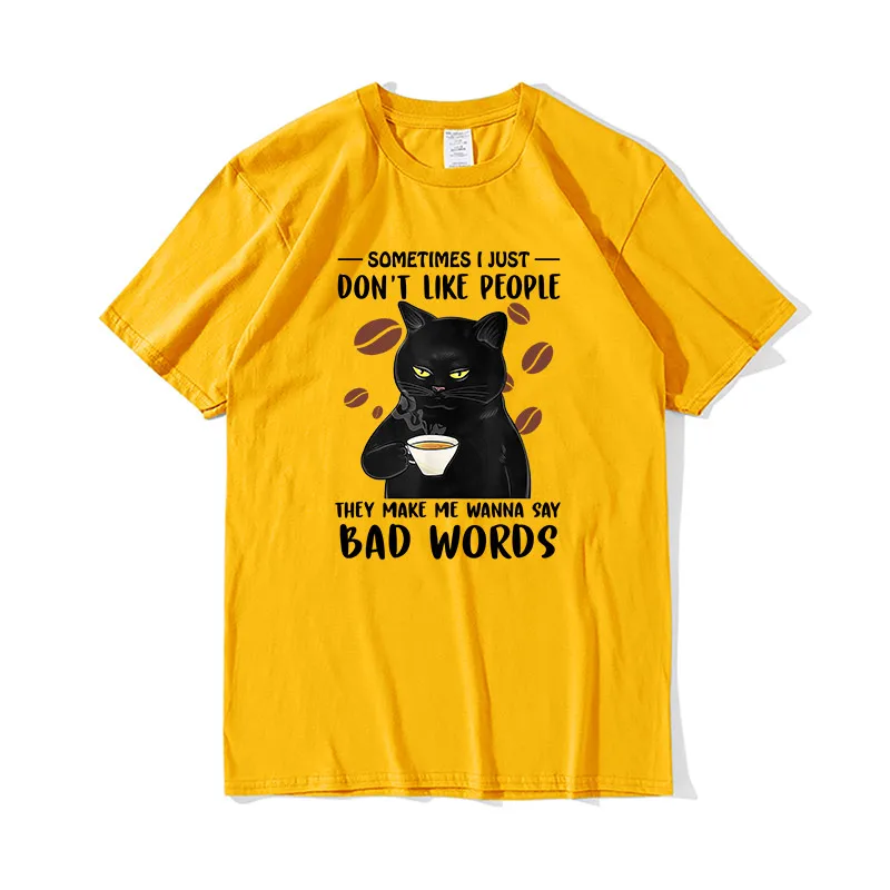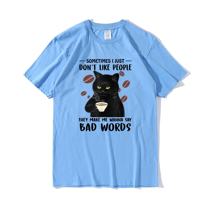 Забавная черная футболка с котом, Мужская одежда, иногда не нравится, люди, которые заставляют меня говорить плохие слова, хлопковая модная мужская футболка, топы