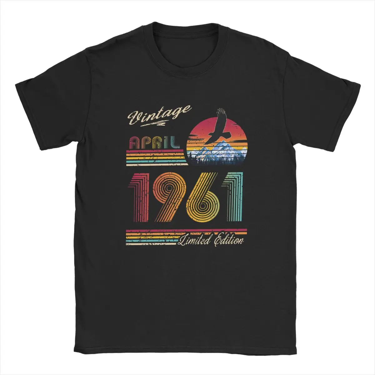 Футболка мужская с круглым вырезом, топ из чистого хлопка, с коротким рукавом, в винтажном стиле, подарок на день рождения 60 лет, апрель 1961, 6XL