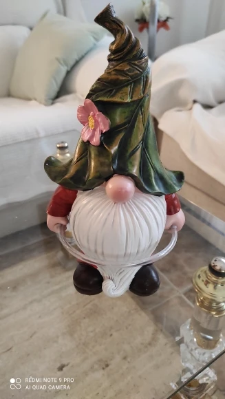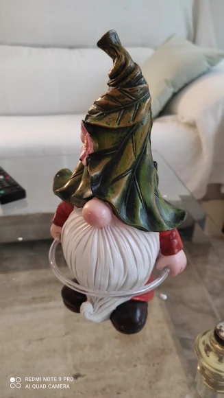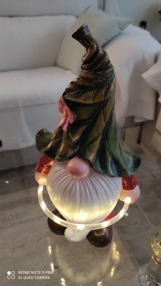 Es muy gracioso, no es muy grande , pues la altura es por el gorro, pero está bien, aunque me hubiera gustado más grande, no se puede pedir más por este precio, si lo encuentras más barato en otro lugar mejor, no merece si lo encuentras más de 23- 25€ .Ha venido en bien de tiempo