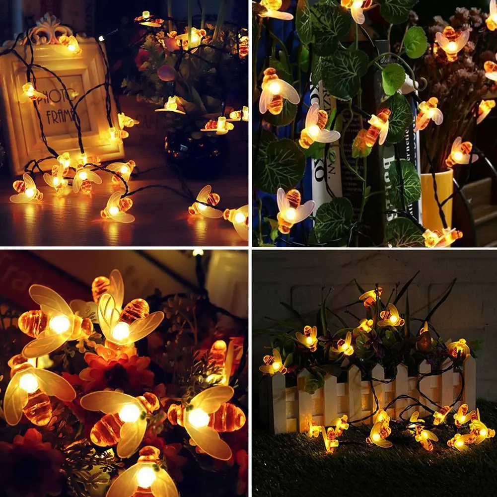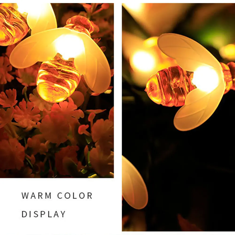 Милая светодиодная гирлянда на солнечной батарее в форме пчелы