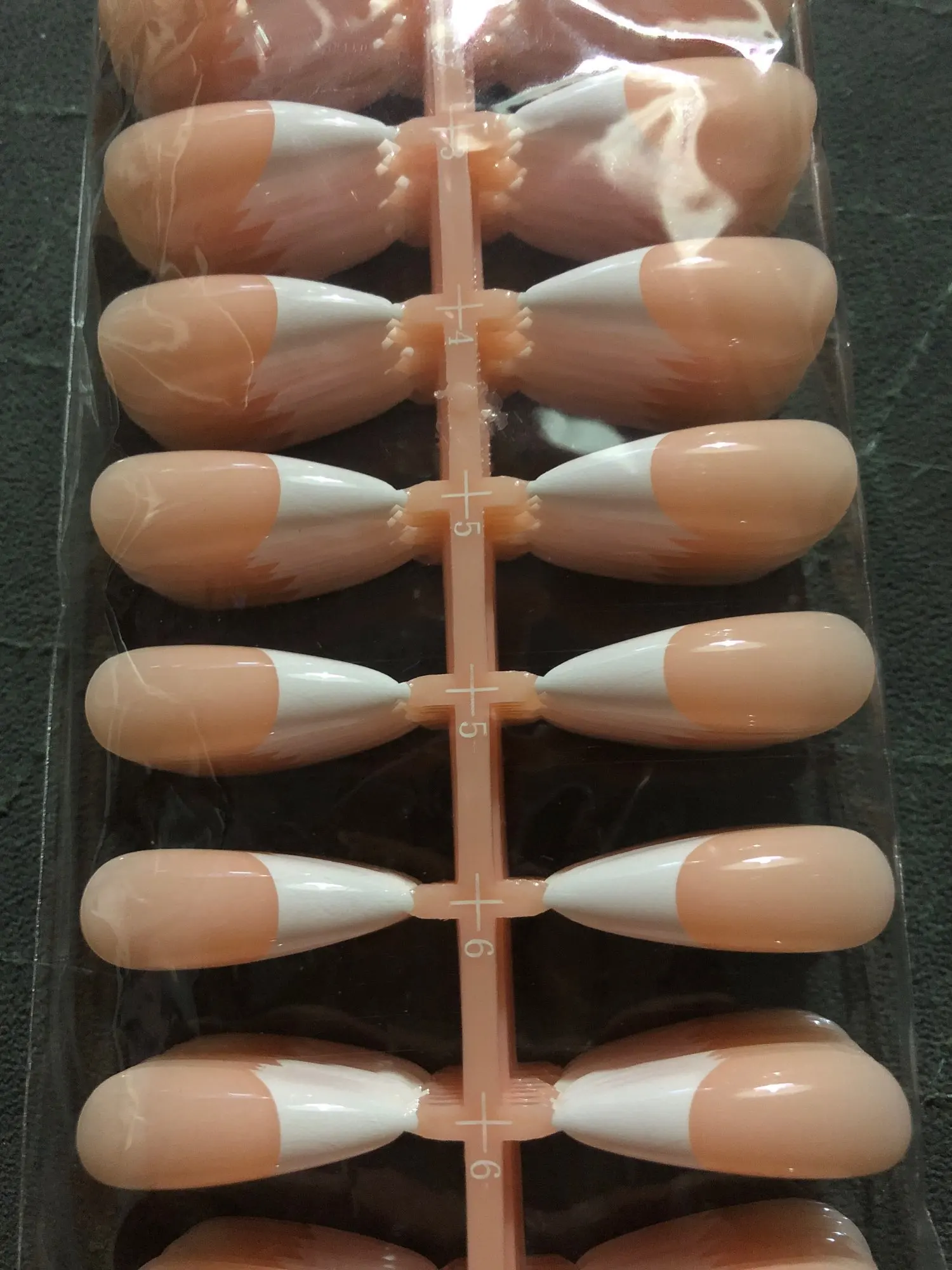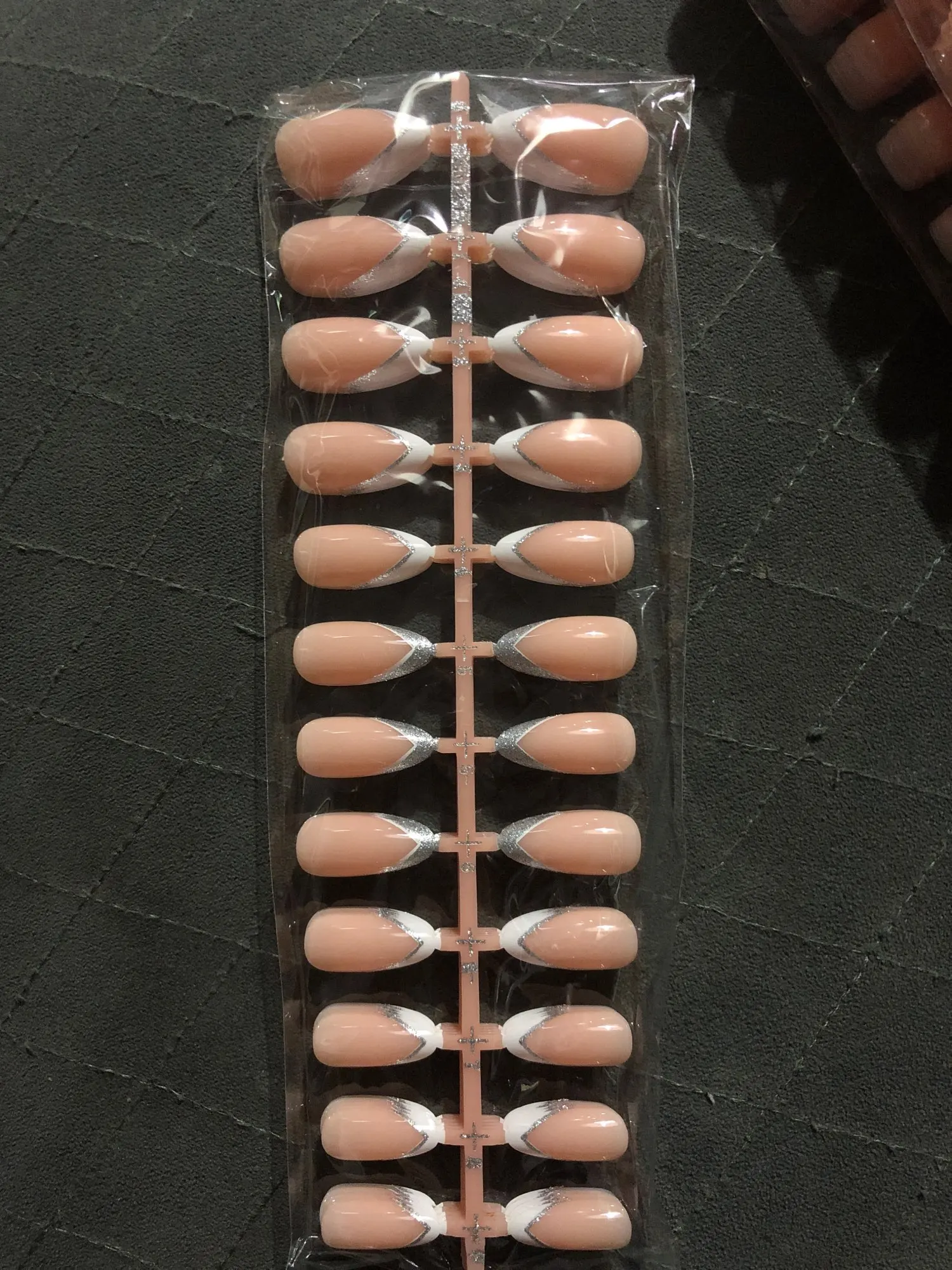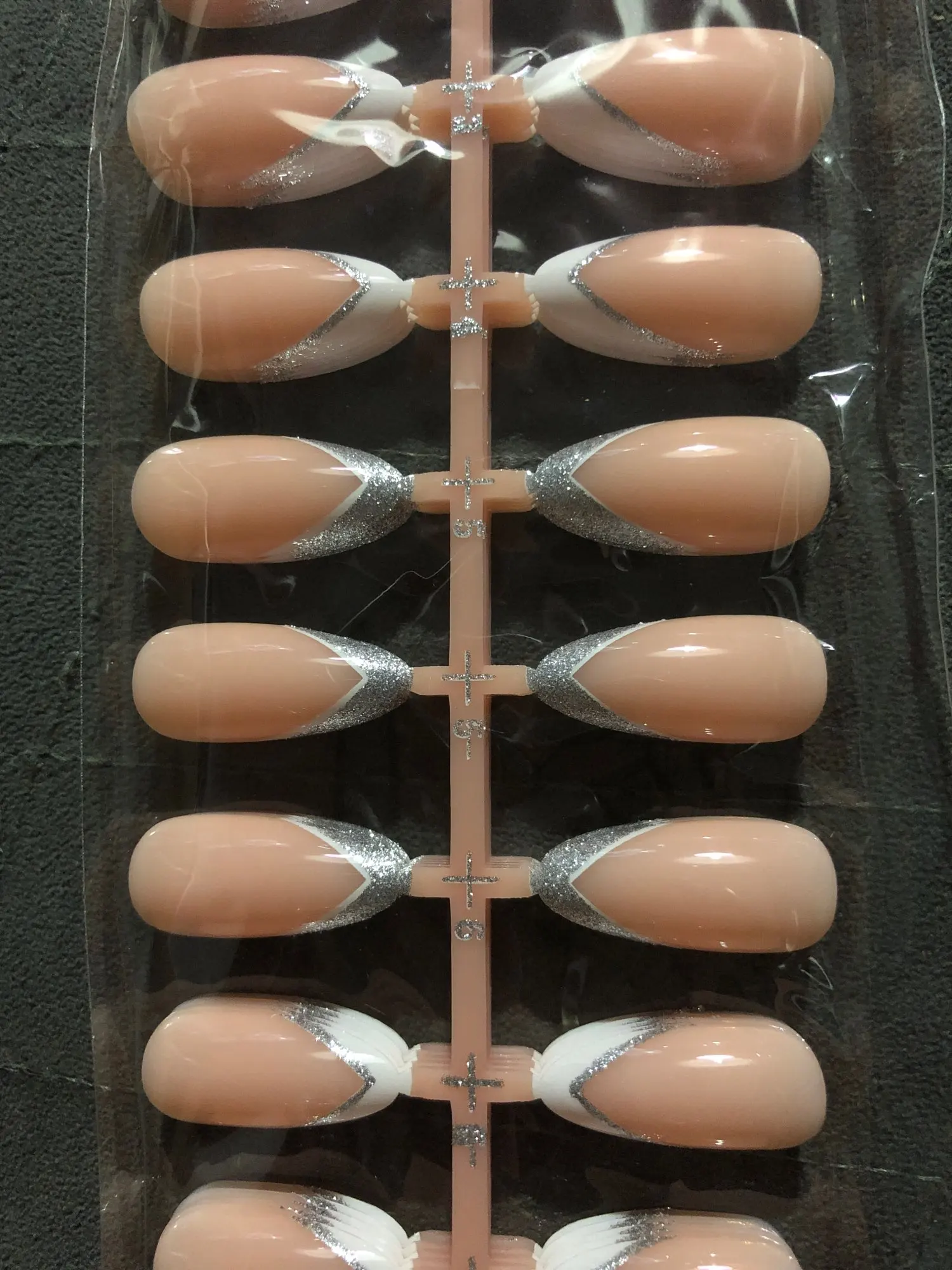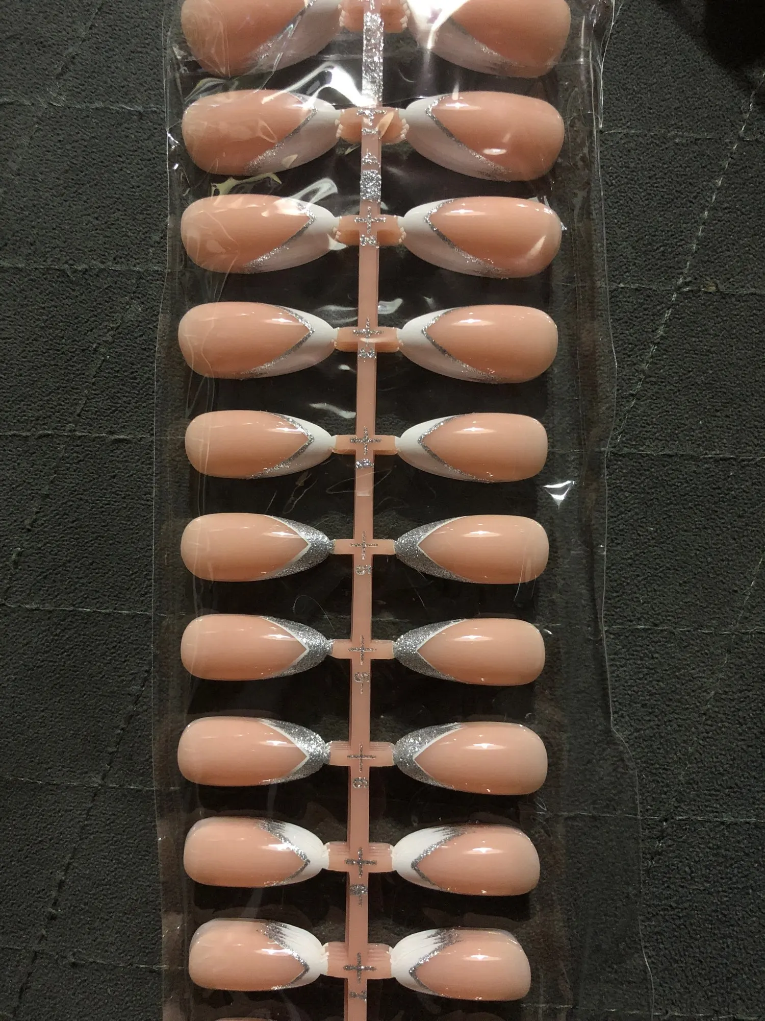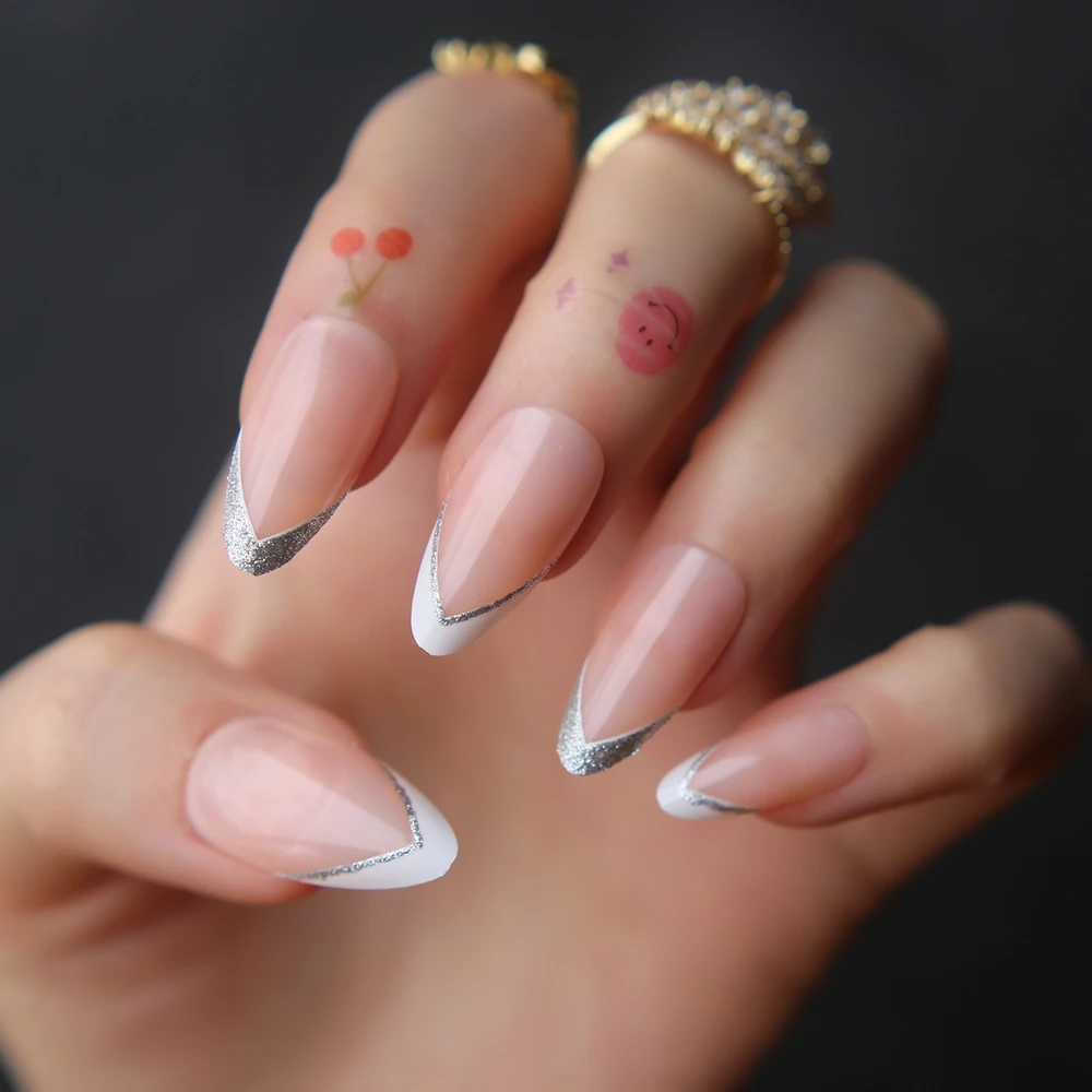 Миндальные накладные ногти нюд блеск V французский новый дизайн средней длины натуральные накладные ногти классические