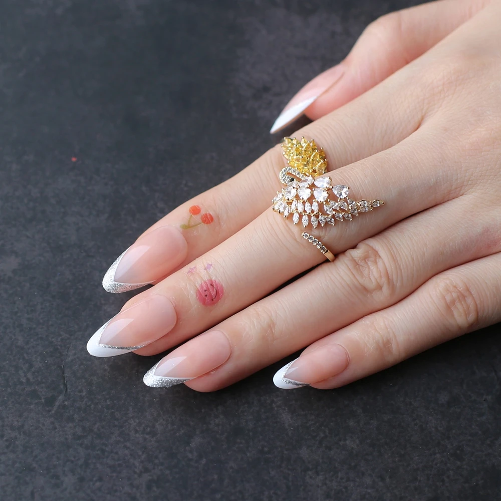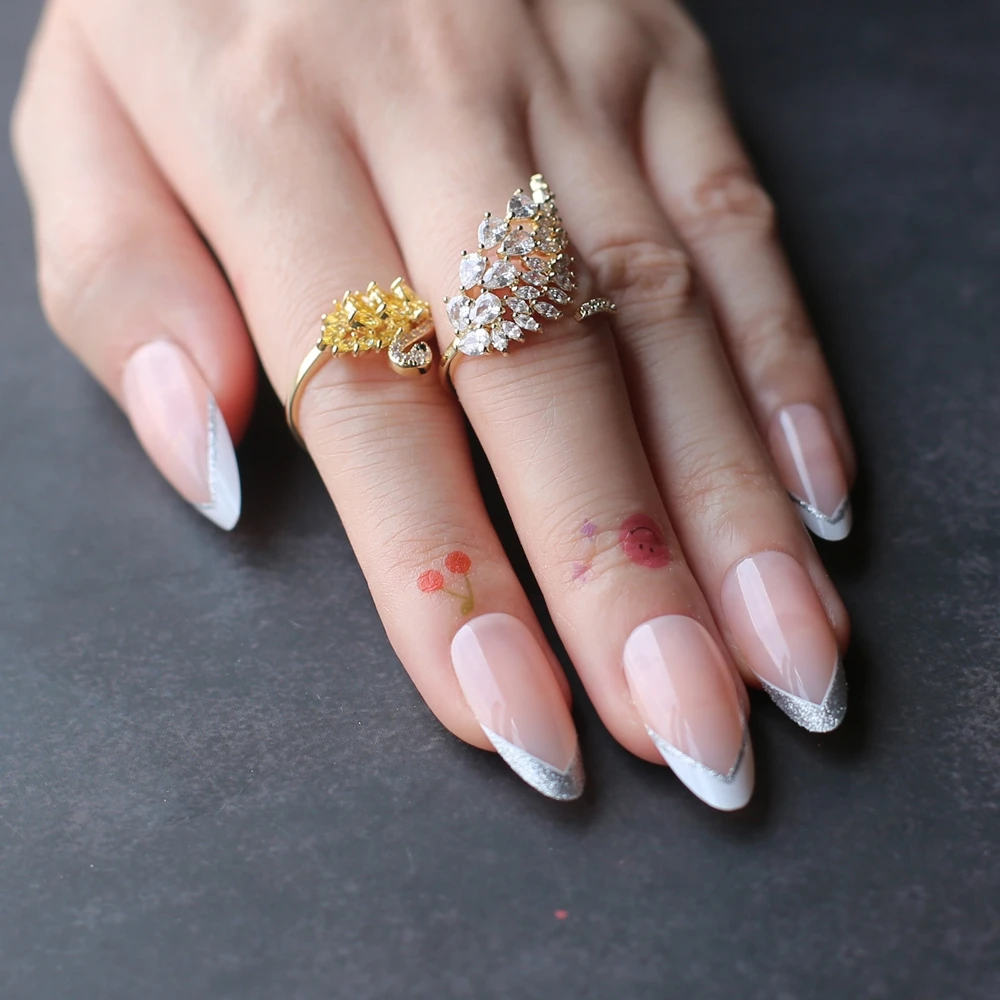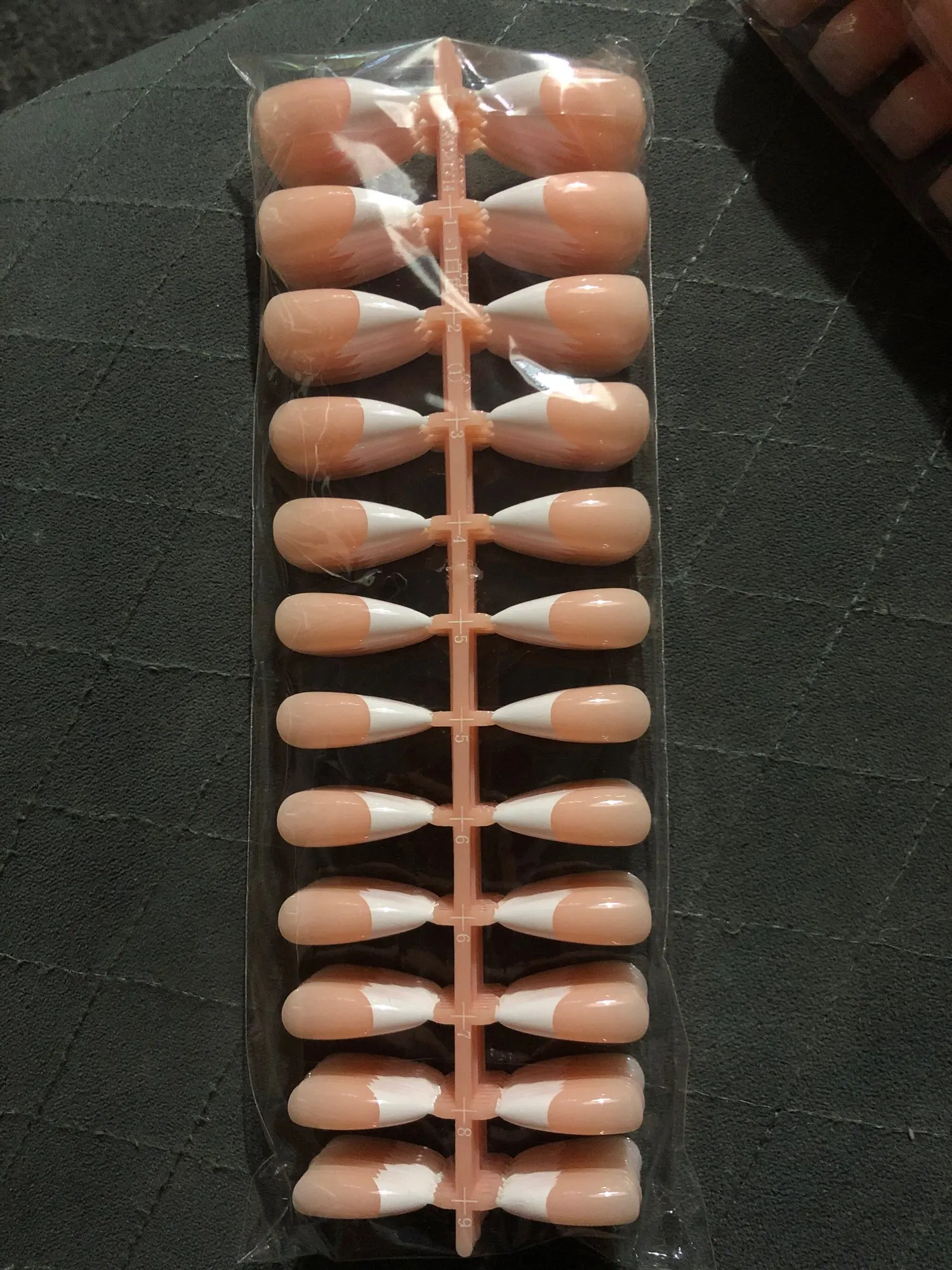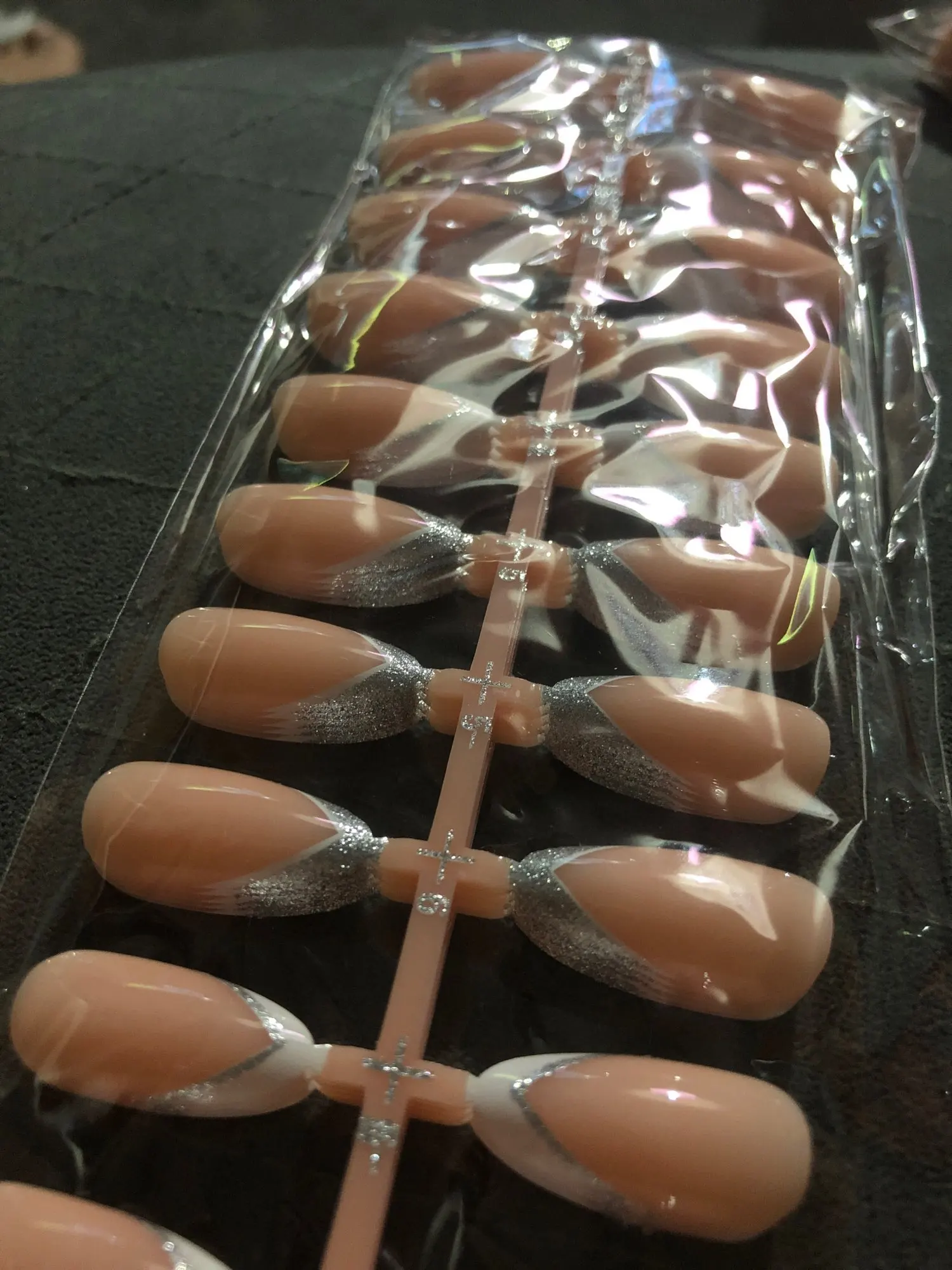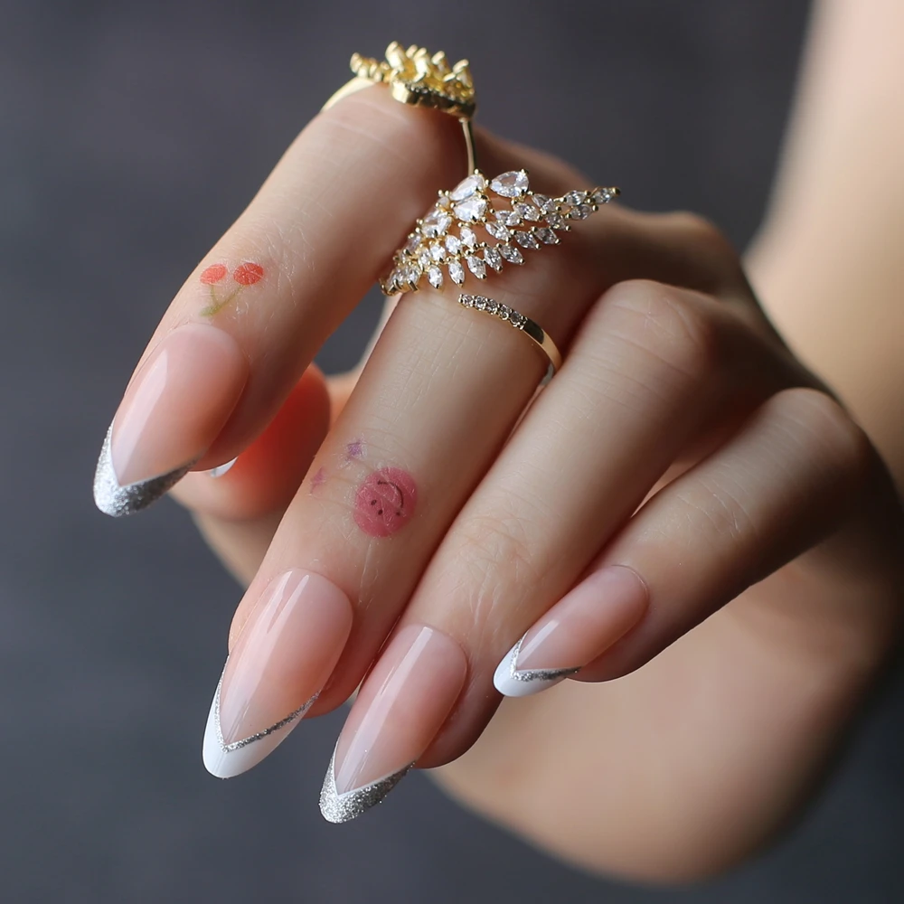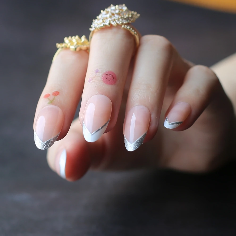 Миндальные накладные ногти нюд блеск V французский новый дизайн средней длины натуральные накладные ногти классические