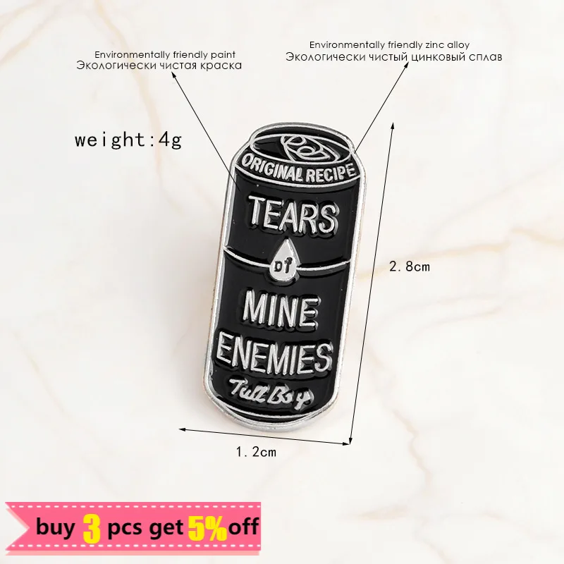 Брошь на лацкан с изображением слезы моих врагов, в черной банке, рюкзак с нашивками, аксессуары для курток, подарки для друзей, оптовая продажа