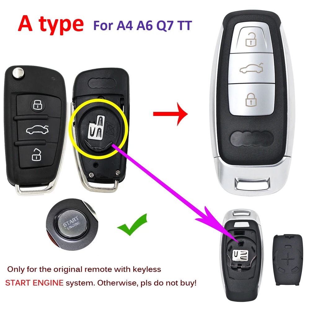 Модифицированный чехол для автомобильного ключа с дистанционным управлением чехол для ключа без ключа чехол для смарт-ключа обновление крышки для Audi A4 A6 Q7 TT A3 Q3 R3 Q2 S3 RS3