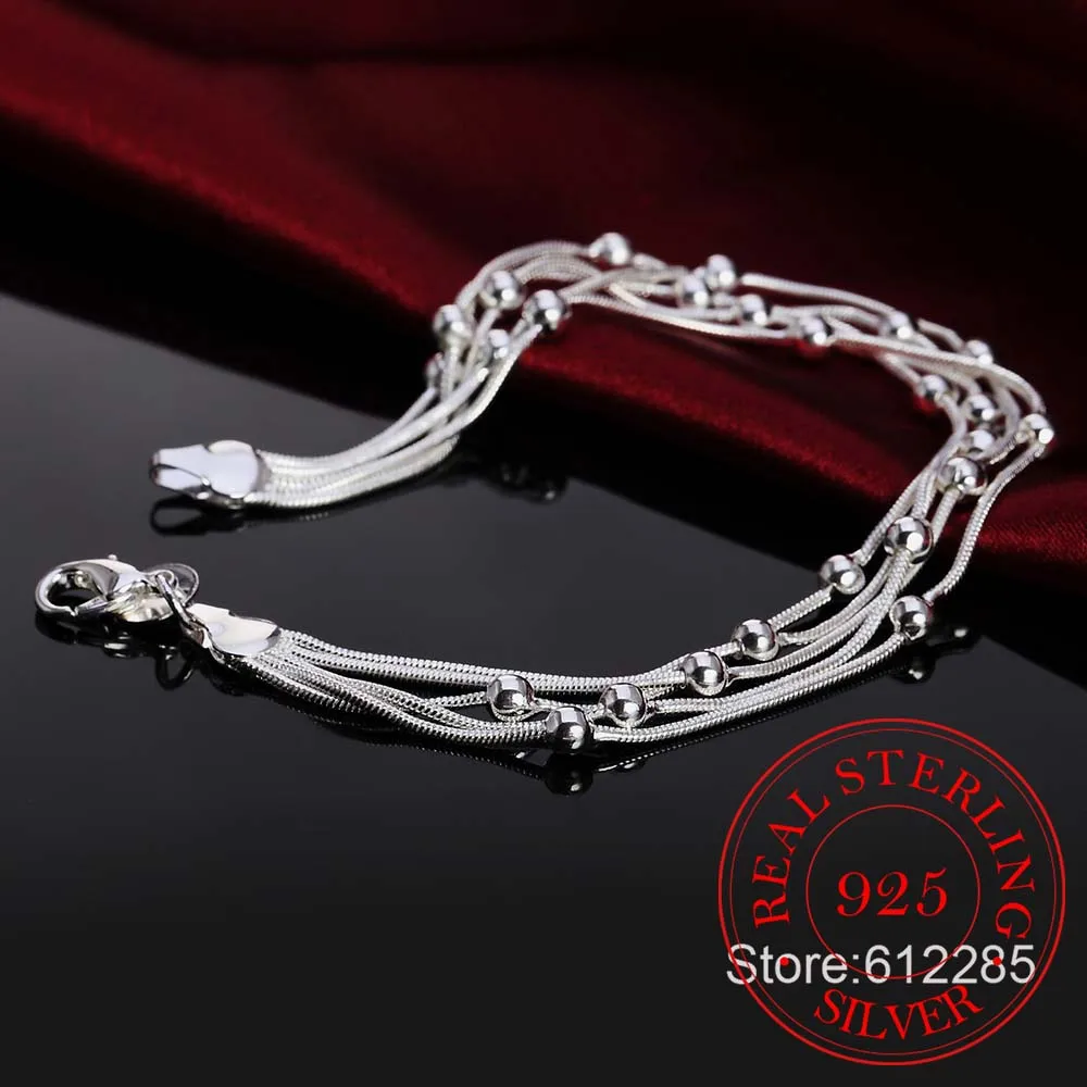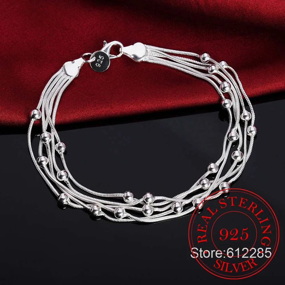Женский браслет из серебра 925 пробы, ювелирные изделия из стерлингового серебра 925 пробы, браслеты с пятилинейными бусинами и шариками, браслет для женщин