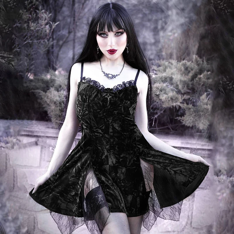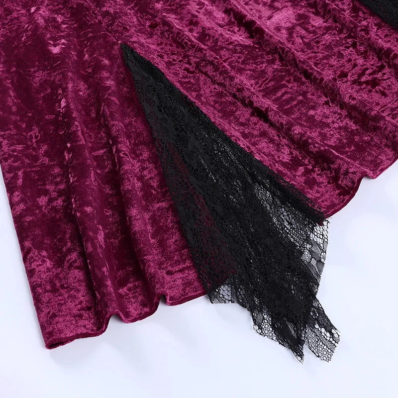 Винтажное сексуальное кружевное платье-мини InsGoth в готическом стиле, красное бархатное платье с высокой талией и разрезом в готическом стиле, для вечеринок